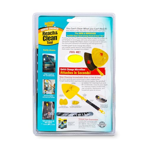 Cleaning a windshield properly can be frustrating, especially when interior glass angles, dashboards, and tight corners make full coverage difficult. The Invisible Glass Reach & Clean is a windshield cleaning tool designed to help clean both interior and exterior auto glass with less effort and better reach. The long handle allows you to reach deep windshields, steep glass angles, and hard to access areas without stretching or straining. This makes it easier to clean interior windshields where haze, film, and buildup often collect and are difficult to remove using towels alone. The tool is also effective on exterior windshields, side windows, and rear glass. Reach & Clean includes two reusable microfiber pads that attach easily to the cleaning head. The microfiber surface is designed to lift dirt and residue from glass, helping deliver a clear, streak free finish. Each pad features a reversible cleaning surface, allowing you to flip to a fresh side during use and continue cleaning larger glass areas without stopping to change pads. This windshield cleaner tool is suitable for cars, trucks, SUVs, and RVs, as well as household windows, mirrors, and glass doors. When cleaning is finished, the included storage bag keeps the tool and pads organized and ready for the next use.