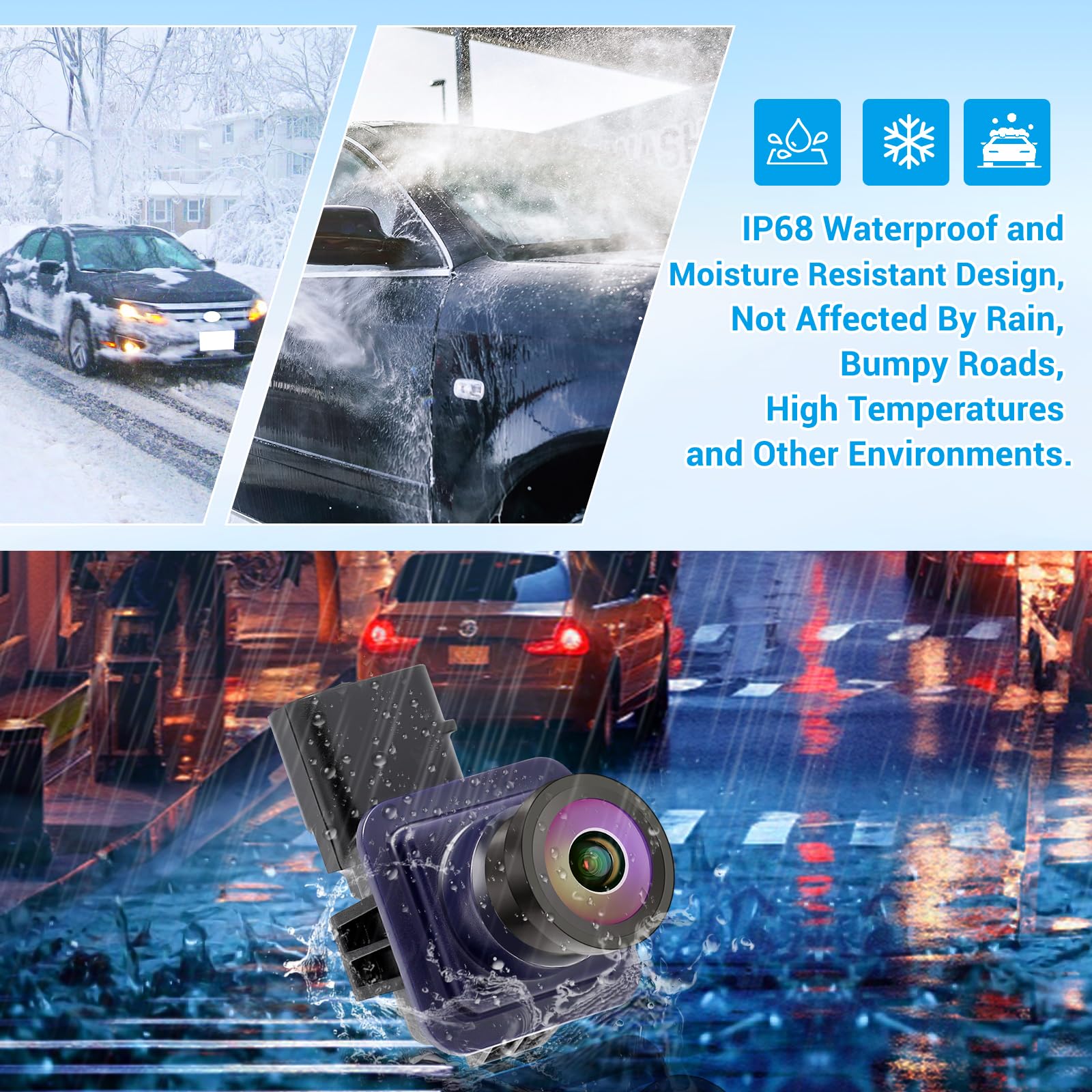 IP68 Weatherproof: Crafted from high-strength ABS material and sealed to IP68 waterproof standards, this Rear Parking Assist Camera withstands rain, snow, mud, and car wash pressure. Designed for long-lasting performance, it keeps delivering a stable image even after years of exposure to tough driving environments.