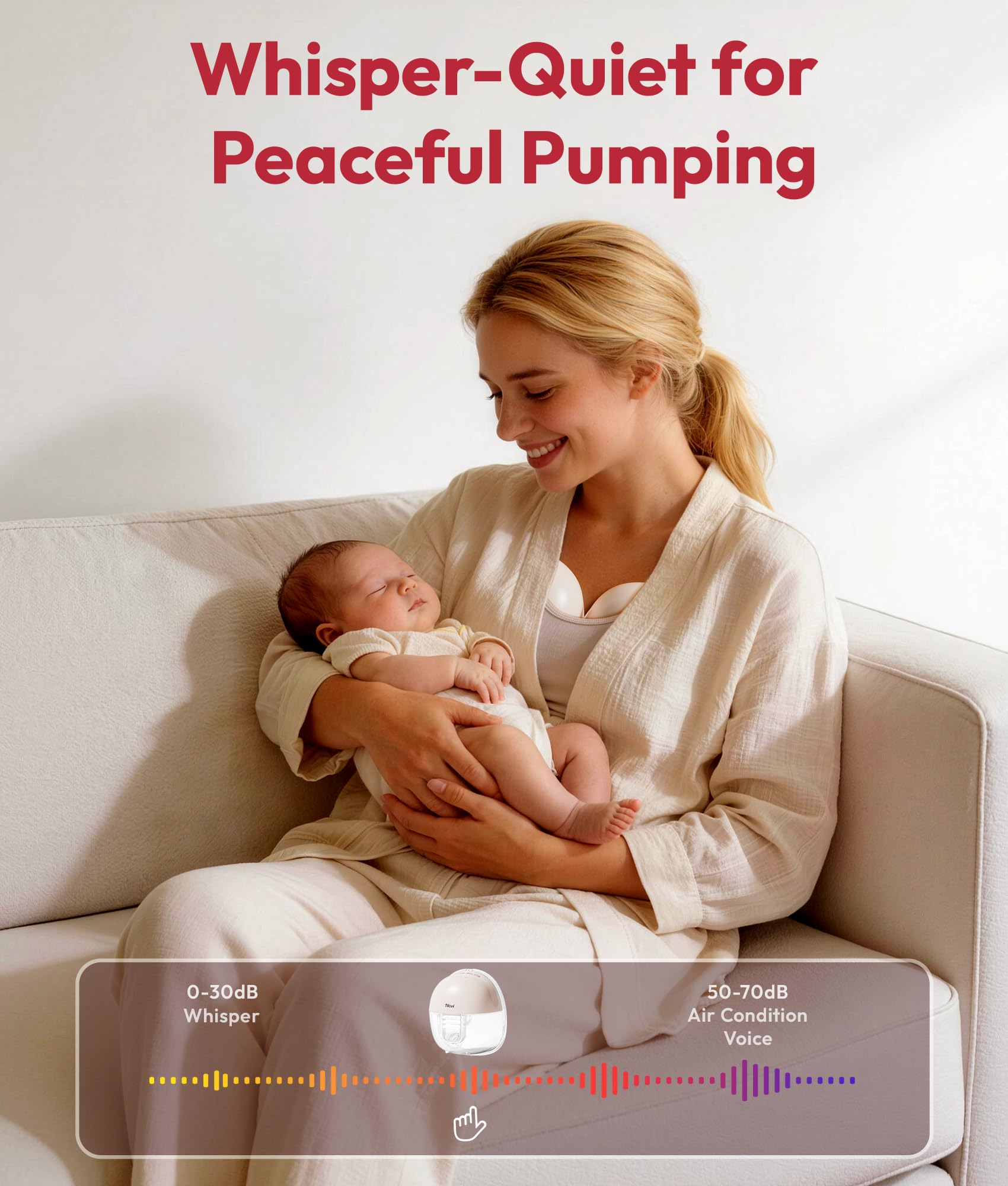 Ultra Quiet for Discreet Pumping Anywhere: Operating at less than 42dB, this hands-free breast pump allows quiet pumping whether you're working, resting, or caring for your baby. Pump confidently at home, in the office, or during nighttime sessions without disturbing others