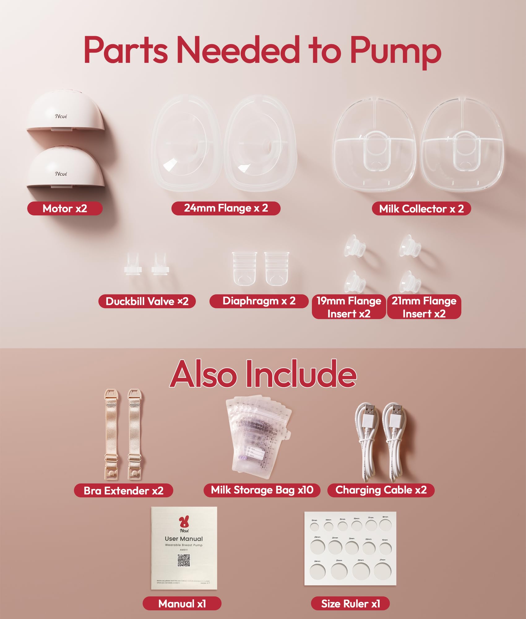Comfortable Fit with Closed System Protection: Comes with a 24mm flange and 21mm insert to help achieve a better fit for different nipple sizes. The closed system design prevents milk backflow, protecting the motor and maintaining hygiene, while BPA-free food-grade materials ensure safe pumping for mom and baby