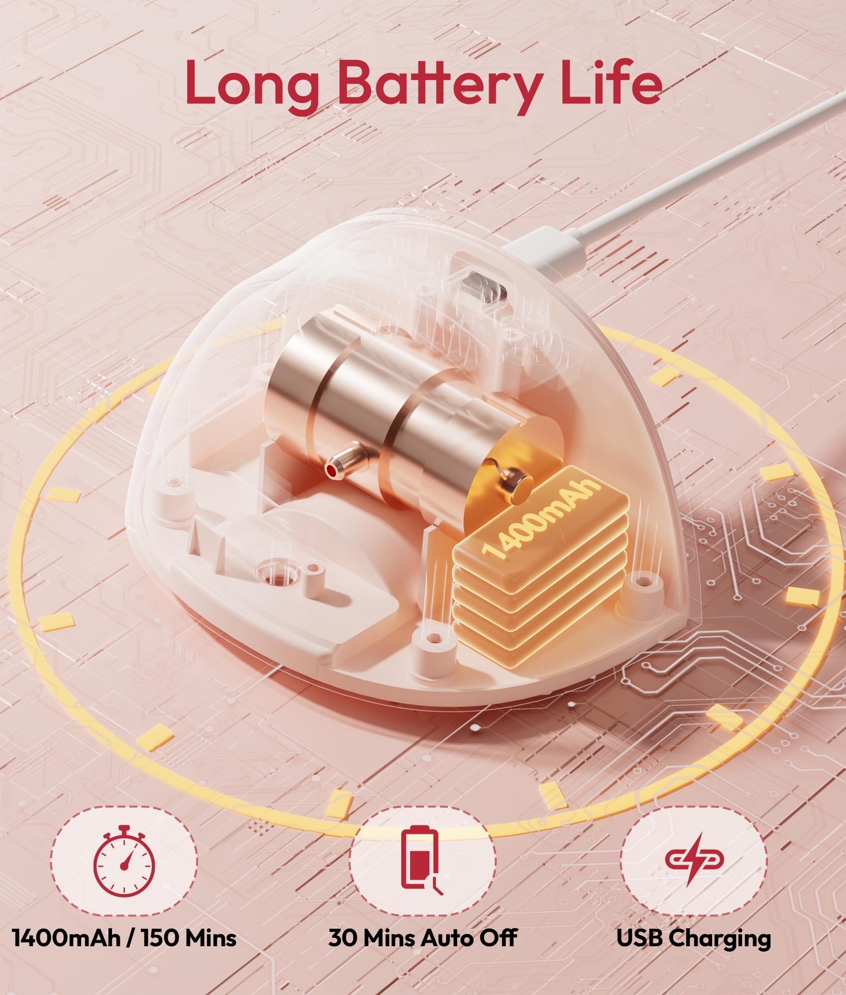 Long Battery Life for Busy Schedules: Equipped with a 1400mAh rechargeable battery, this portable electric breast pump provides up to 150 minutes of pumping time (about 5–6 sessions) on a single charge, supporting moms throughout the day at home, work, or on the go