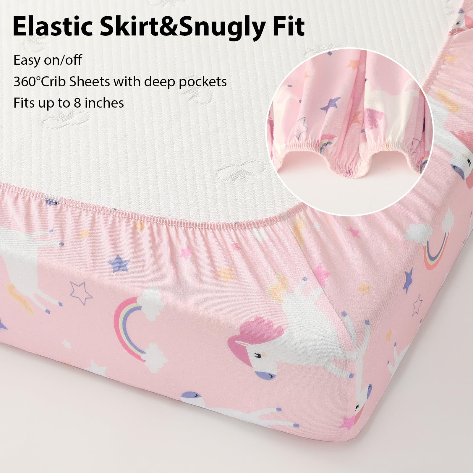 Easy Care & Sustainable: Made from pre-shrunk fabric, our crib mattress sheets resist fading, pilling, and shrinking, even after hundreds of machine washes. With double-stitched edges and corners, our baby girl crib sheets are built to last, ensuring comfort for your baby.
