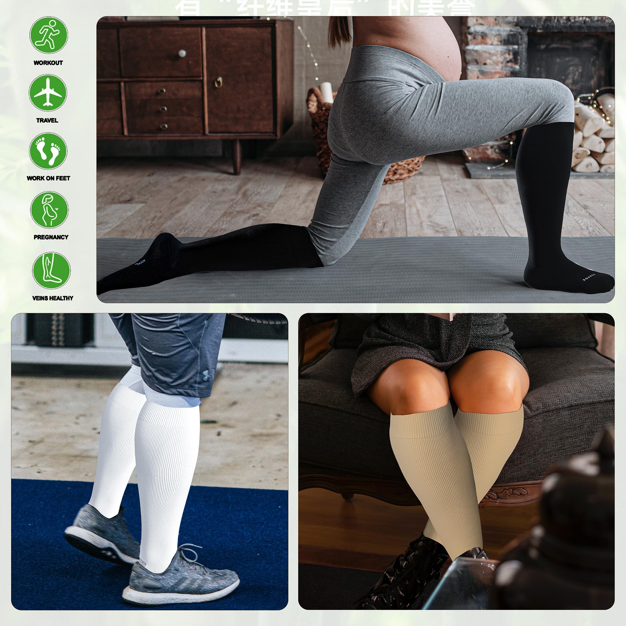 Medical Compression Socks: Extra wide calf compression socks are ideal for women prenancy and post-surgery recovery. They reduce soreness, alleviate pain from swelling during pregnancy, and provide support that eliminates fatigue and energizes the legs. Best compression Socks for nurses, physical therapist, long shift work, air plane travel, pregnant women.