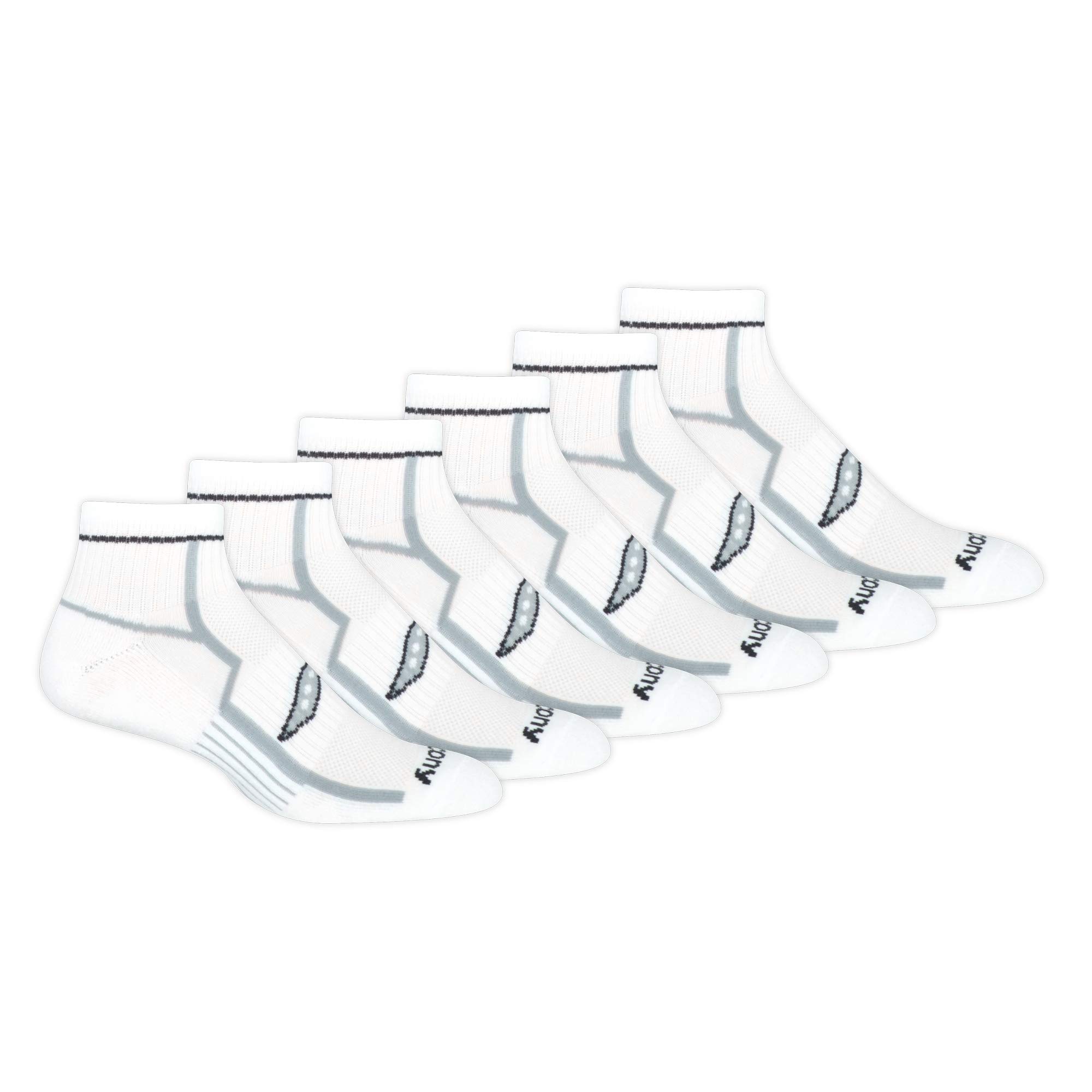 Description Saucony men's performance no quarter socks is a perfect combination of comfort and support. Great for the toughest training sessions. Its arch support, air mesh venting, and moisture management features will ensure lasting comfort.