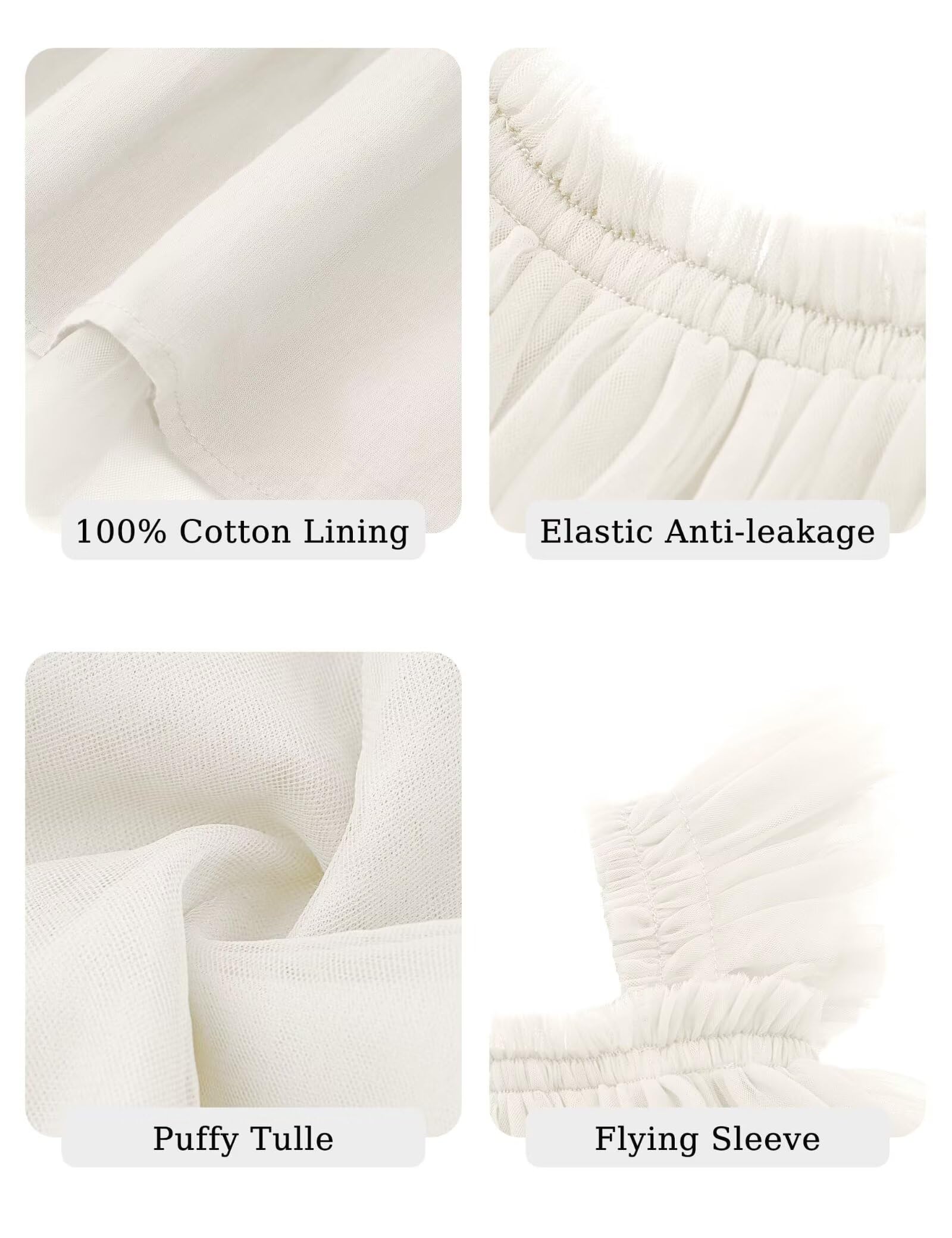 【Soft & Skin‑Friendly Material】Made of high-quality tulle with a soft lining, this dress is gentle on baby’s delicate skin. It is not scratchy, stiff, or see-through, ensuring comfort for all-day wear and photo sessions