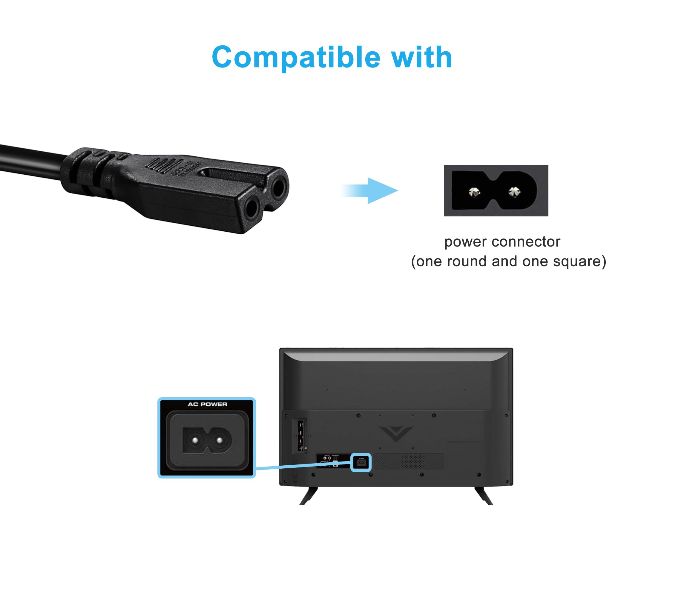 Compatible With: Philips TV 42PFL3704D/F7 37PF7320A/37 42PFL7403D/27 42TA648BX/37 42PFL7422D/37 42PFL7432D/37 and More ( Flat Figure 8 Tail Power Cord as Pictures )