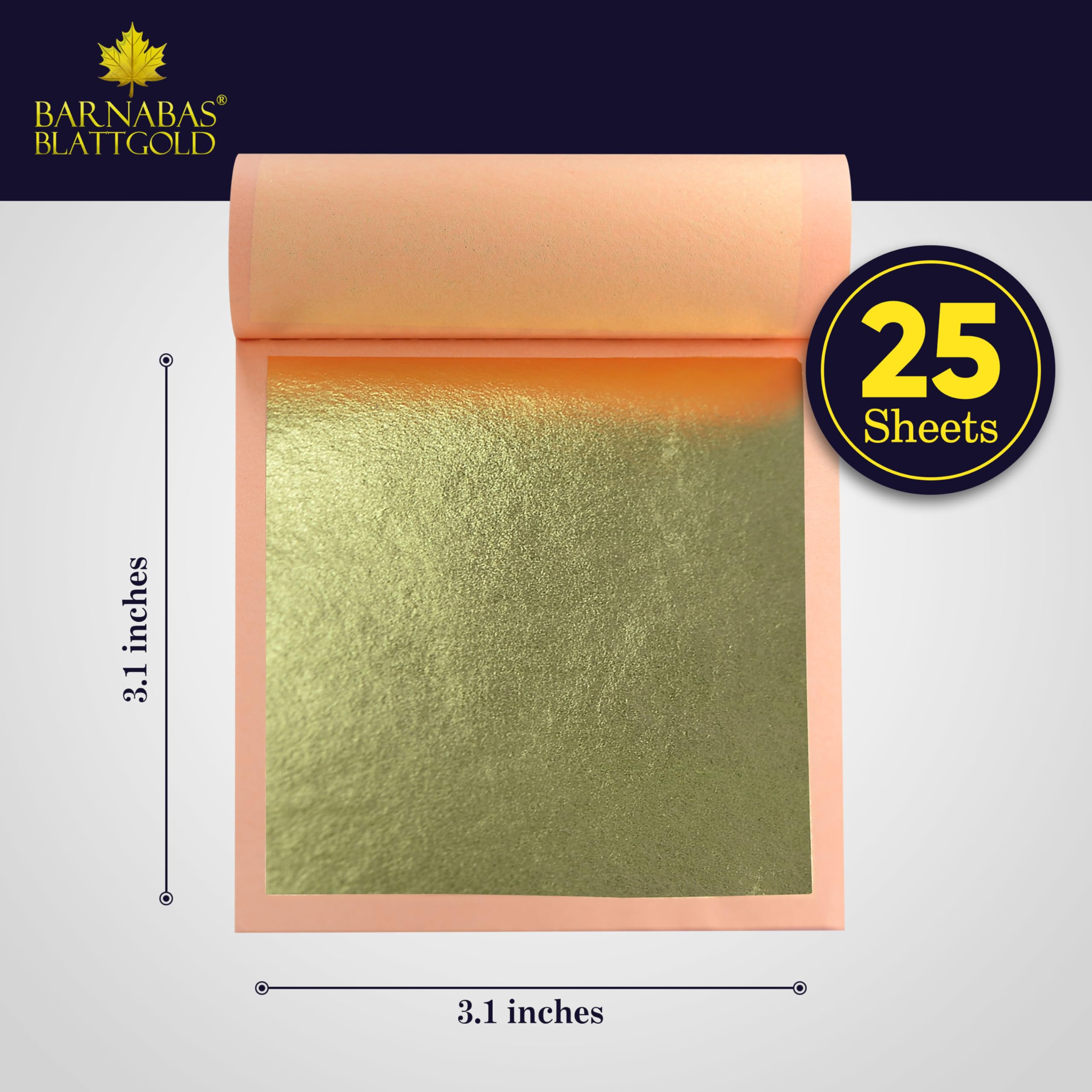 Professional Grade Leaf: There are 25 sheets of genuine 22k gold leaf in a pack, measuring 3 1/8 x 3 1/8-inch per sheet. 25 sheets covers approx 1.7 sq of flat area.