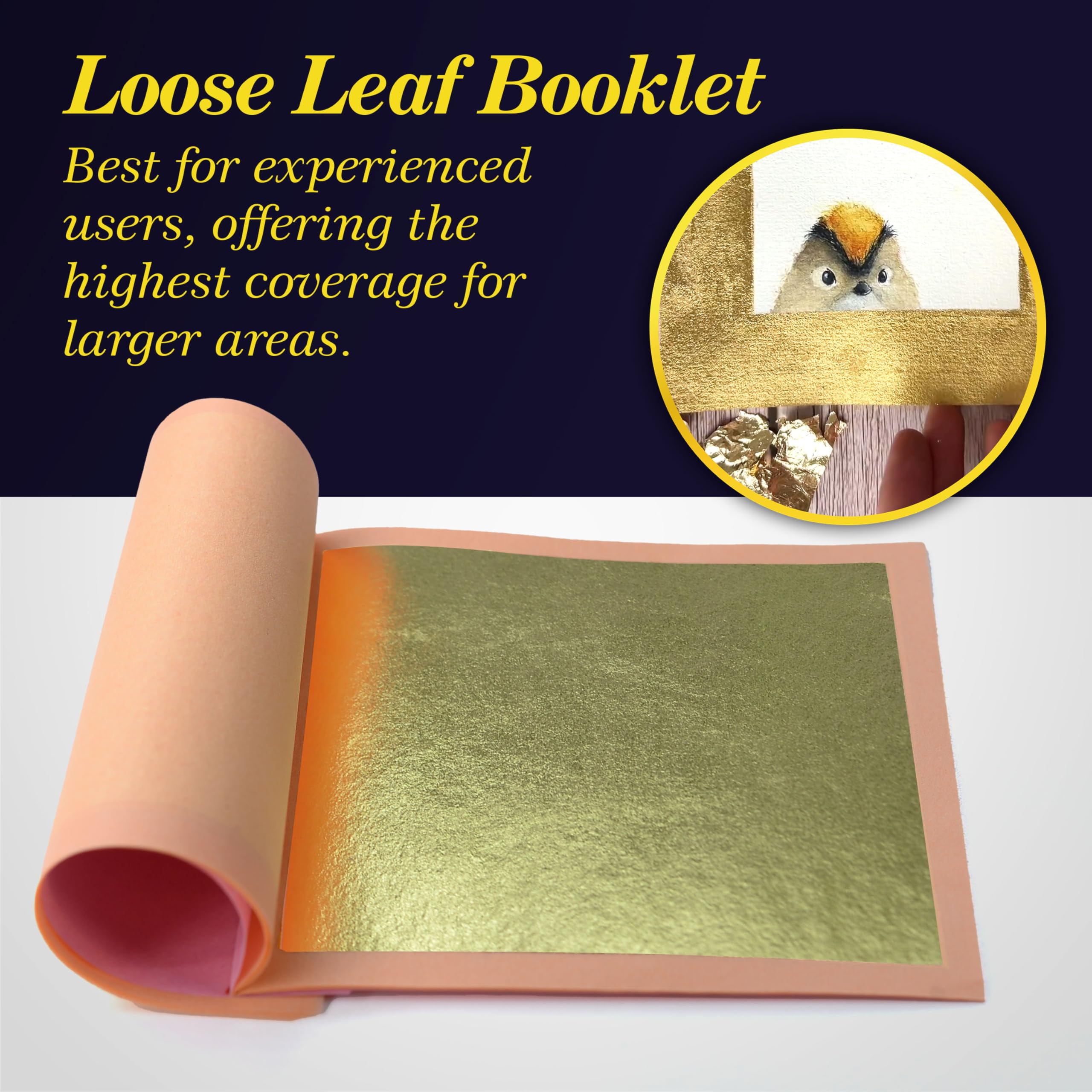 Loose Leaf: Each gold leaf foil sheet or hojas de oro para manualidades is separated by tissue paper.