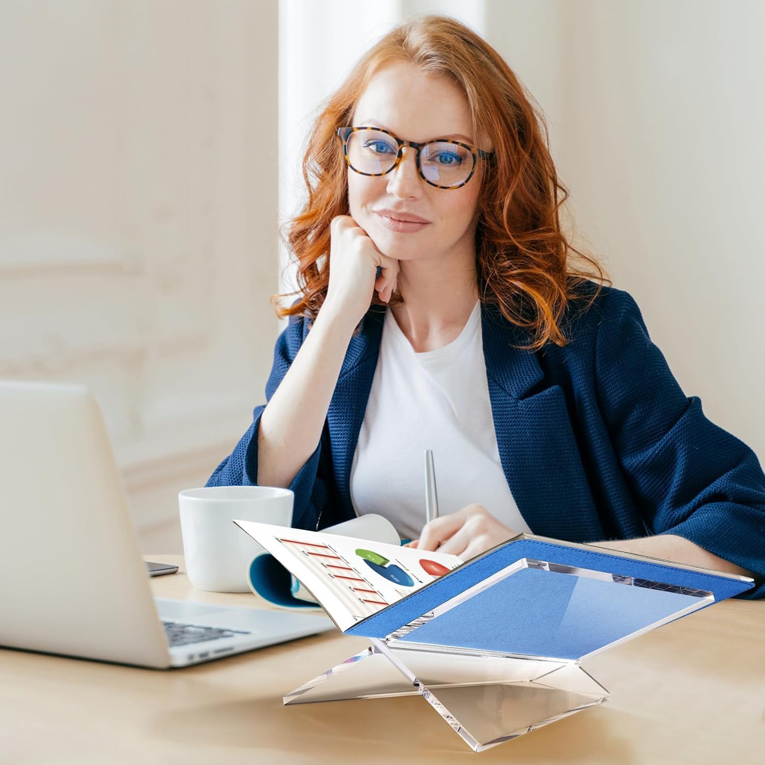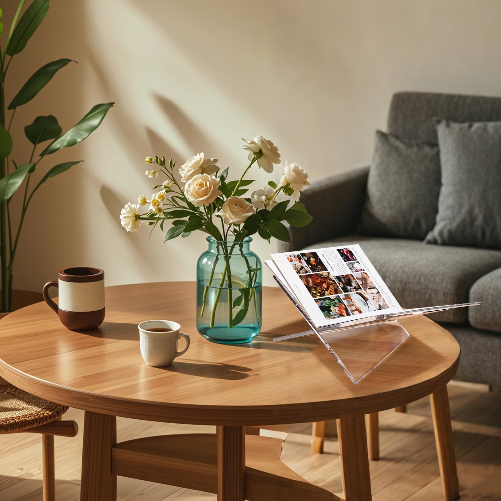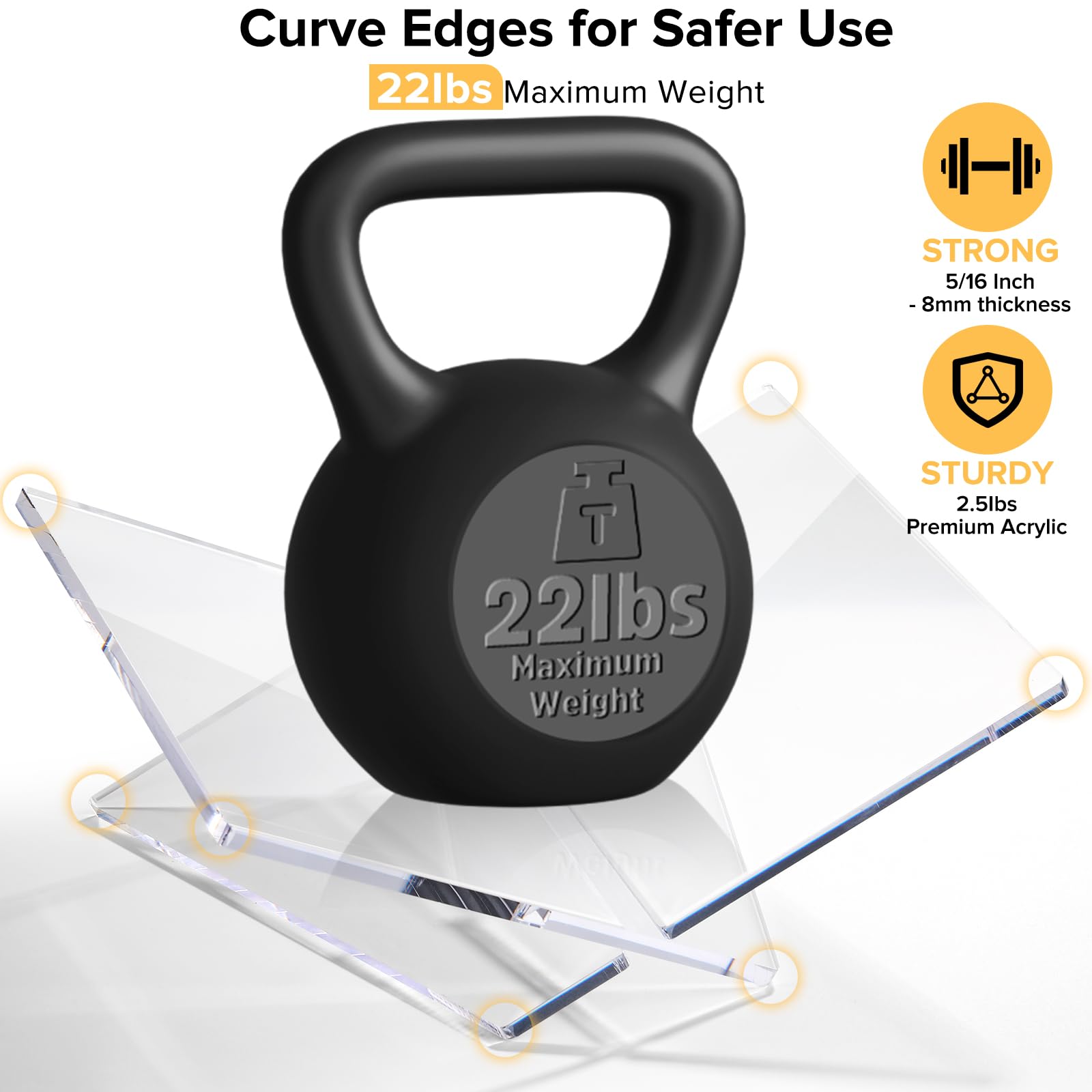 Thickened Acrylic Book Holder : This modern open book holder stand is made from 5/16in (8mm) thick acrylic making it strong and lightweight. We used 22 lbs (10 kg) of weight-bearing test, it did not crack or break at all. We specifically reinforced and thickened the cookbook stand to make it more durable and capable of holding heavier books.