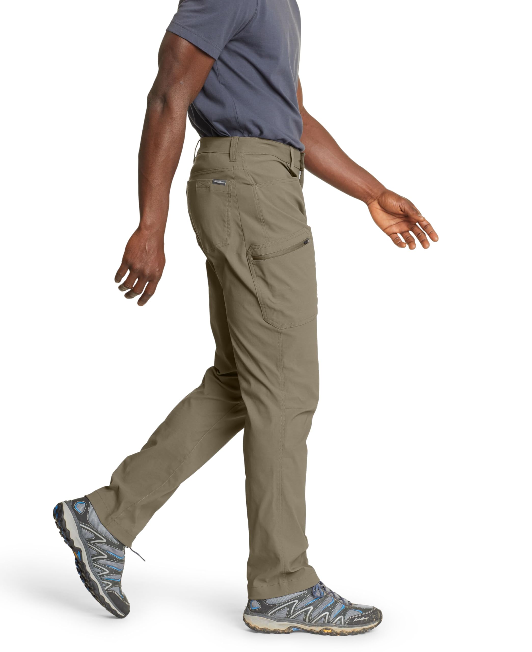 Description Built on a legacy of adventure-driven innovation, Eddie Bauer is committed to a sustainable and inclusive future for all. By utilizing materials and methods that minimize environmental impact, we strive to build an outdoor culture that is open, welcoming, and accessible to every explorer. This mission drives us to create high-performance apparel that respects the planet while empowering you to discover the great outdoors with confidence and purpose. Experience professional-grade performance with guide-tested ripstop fabric engineered for everything from alpine scrambling to backcountry climbing. This lightweight, bluesign® certified nylon-spandex blend features Flexion two-way stretch technology and articulated knees, ensuring exceptional mobility while taking anything you dish out on the trail. To keep you protected, these pants include a StormRepel® DWR finish to shed moisture and FreeShade® UPF 50+ sun protection to block harmful UV rays during long days in the sun. Discover a streamlined silhouette designed for high-intensity movement with an Active Fit that sits close to the body without restricting your range of motion. These moisture-wicking, quick-dry pants are equipped with a total of five pockets, including a zippered cargo pocket at the thigh to keep your phone and maps secure. Whether you are navigating a summit or traveling light, these pants pair perfectly with technical hiking boots or a performance sun hoodie, providing a secure, athletic profile for any adventure.