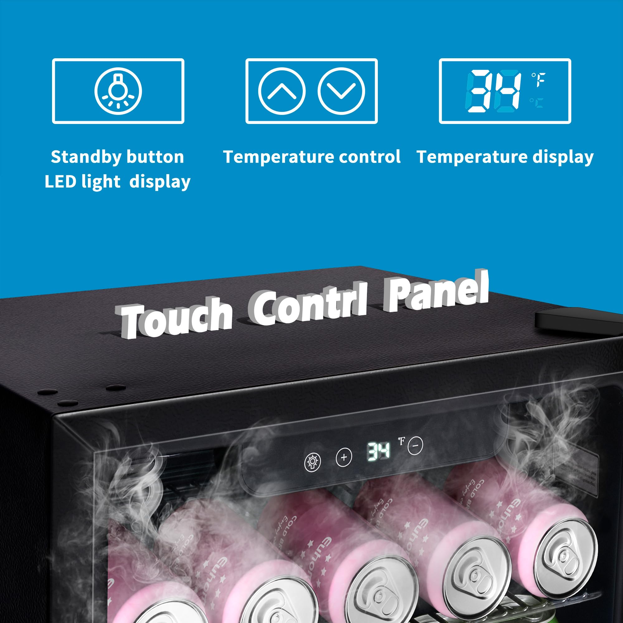 Precision Temperature Control - Crafted for beverage cooler, this versatile beverage refrigerator features a sleek digital interface. Effortlessly fine-tune your wine fridge by 1°F increments via touchscreen controls. Perfectly preserve vintages within the ideal 32°F to 61°F range with intuitive LED-lit operation.