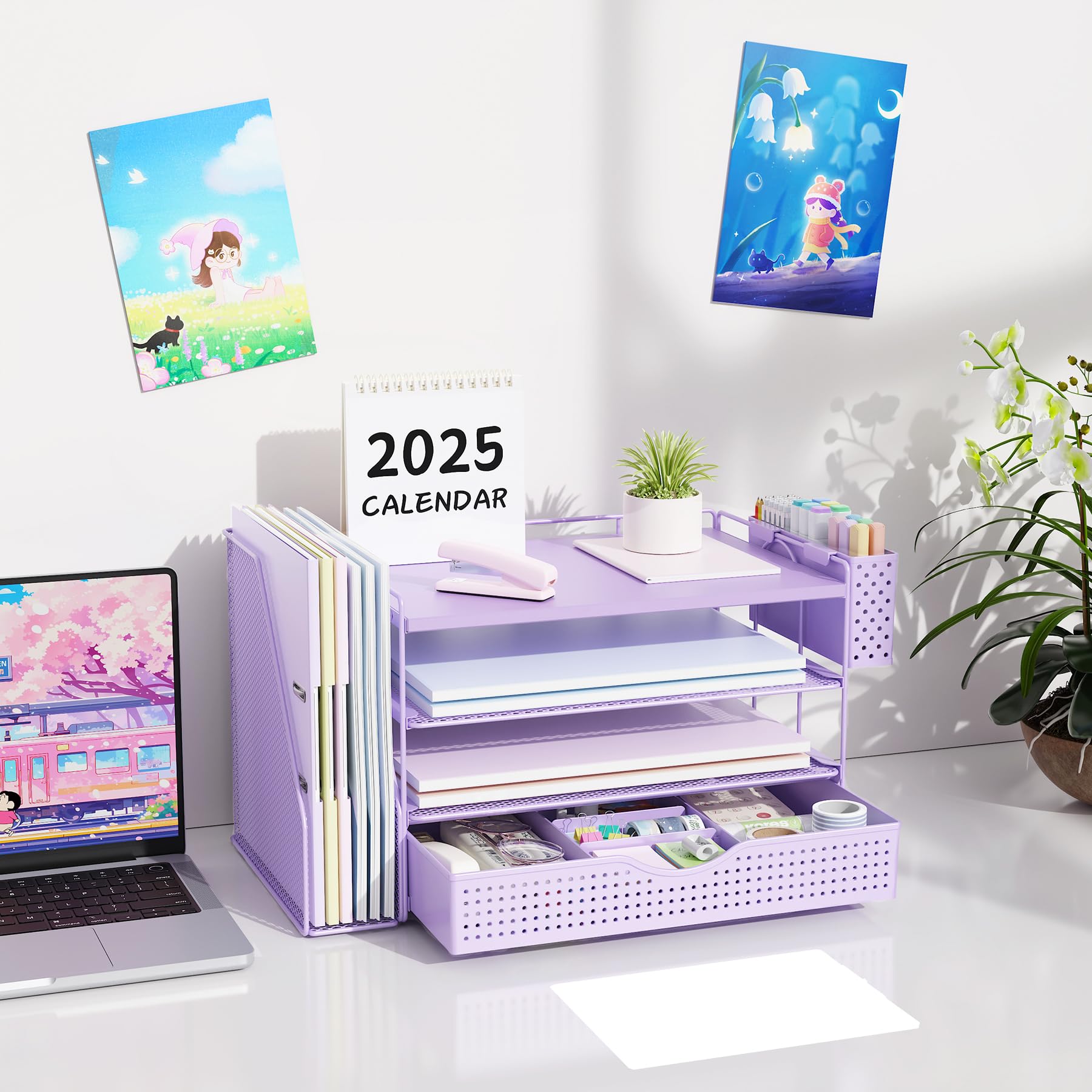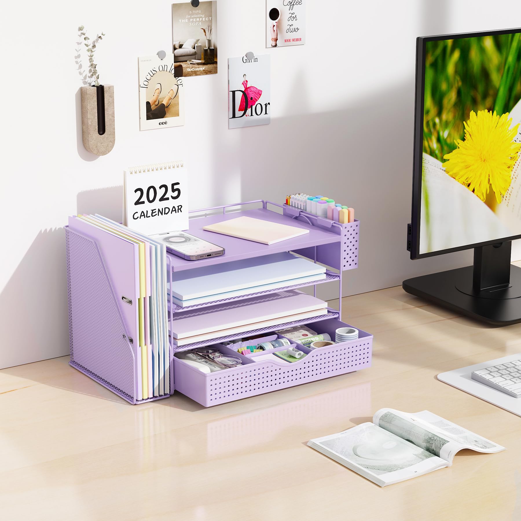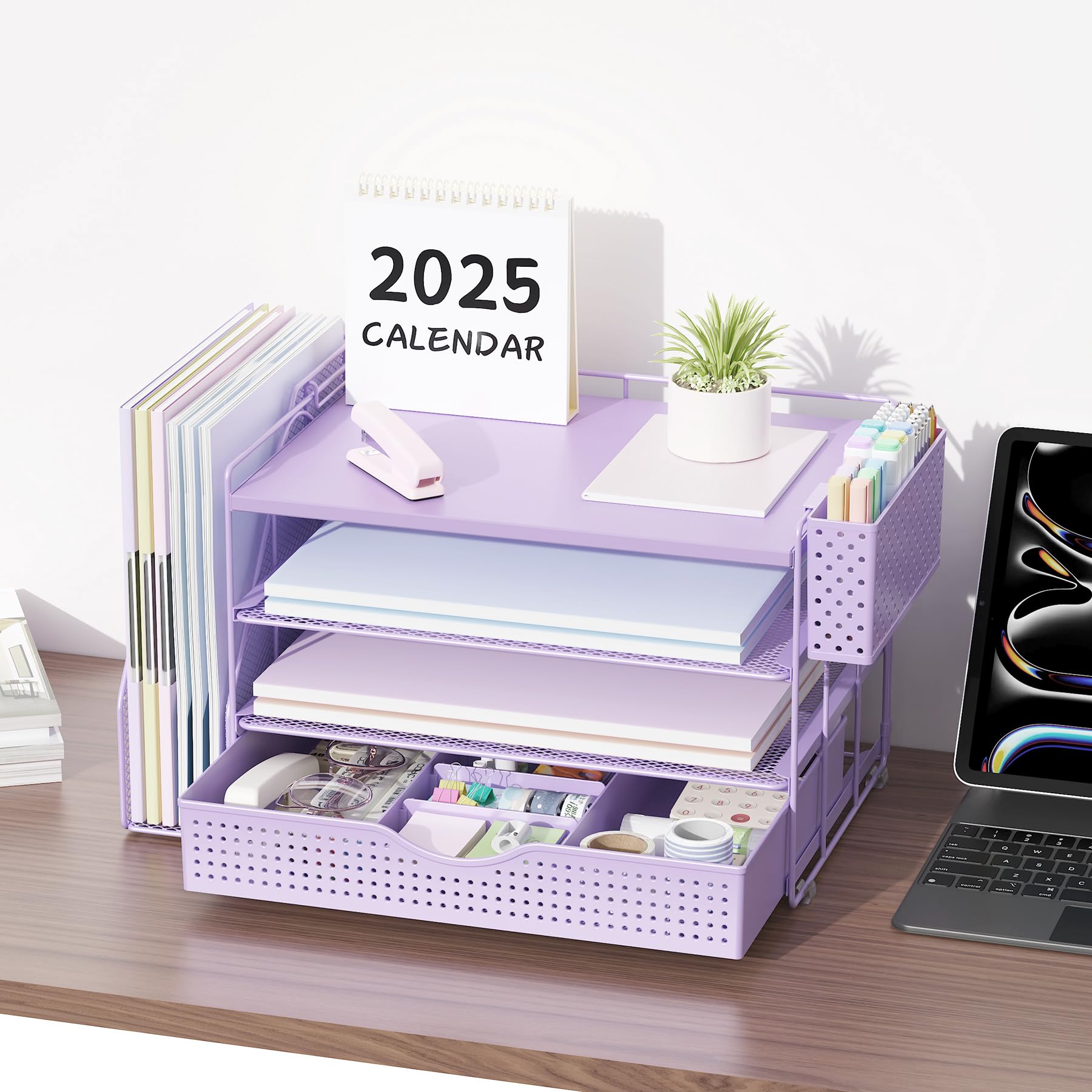 【Improve Work Efficiency】: This pen organizer contains 4 trays, 1 magazine rack, 1 pen holder, and 1 sliding drawer, which can help you quickly identify the contents of each compartment, helping to keep papers, notebooks, and office supplies neatly organized and easily accessible., so that you can stay busy and creative all day long.