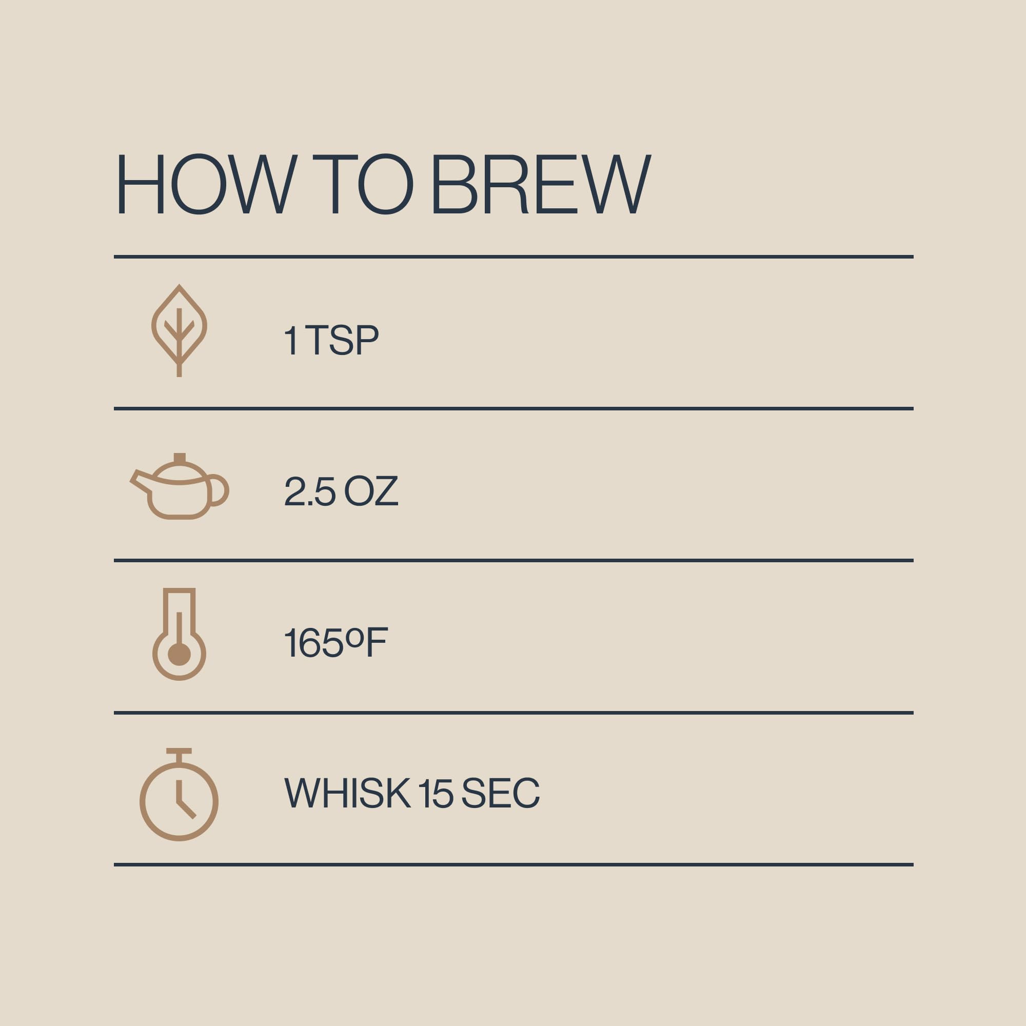 Savor & Enjoy - Mix 1 tbsp with 2 oz of 160 degree F water. Whisk for 15 seconds and enjoy