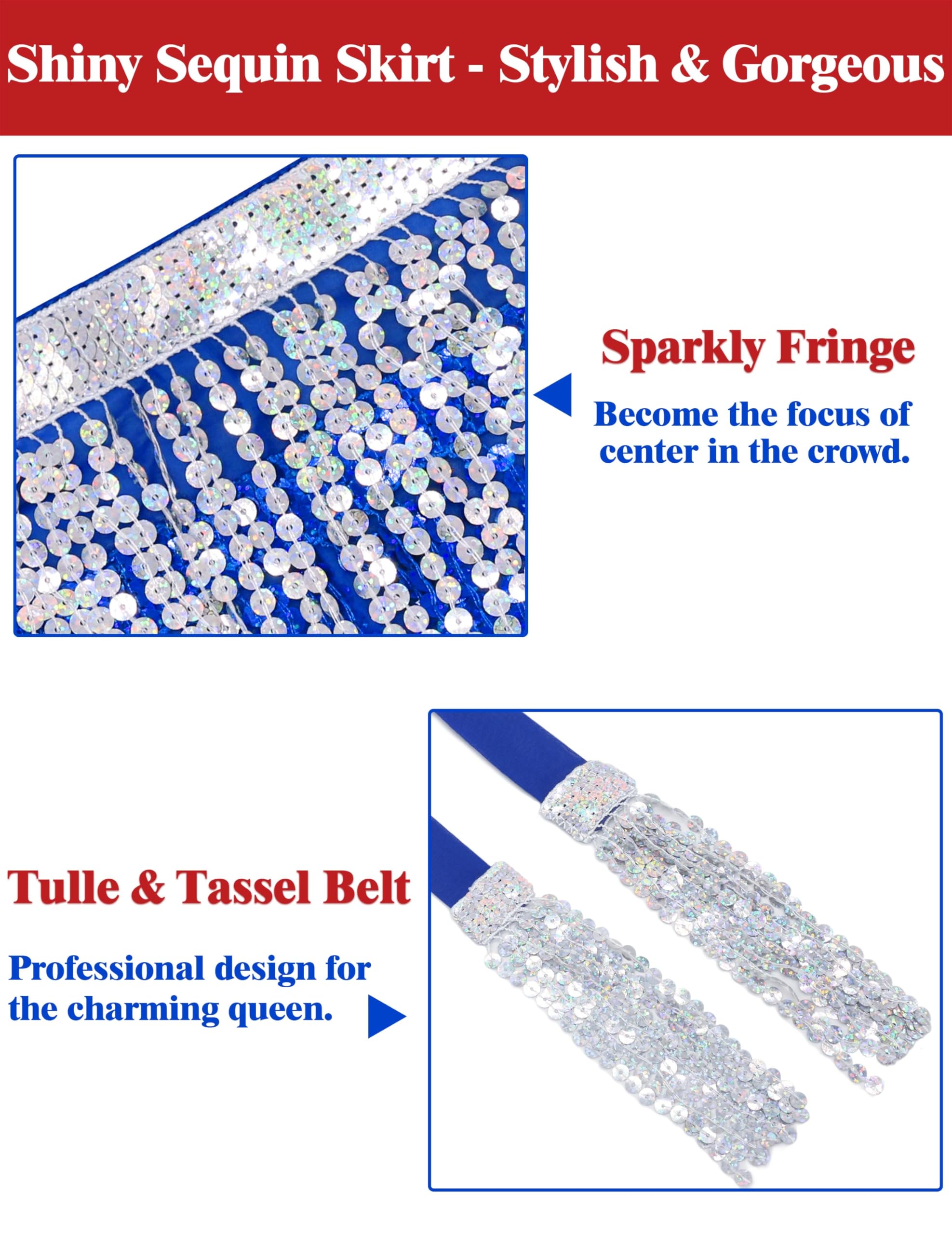 EXCELLENT FASHION ACCESSORY: The tassle sparkle skirt is a perfect choice for various festivals. The rave skirt has beautiful fringed layers and is decorated with silver, red and blue sequins that perfectly match the colors of the American flag. The slightly sheer tulle and natural hanging tassel sequins make you look more sexy and attractive. When you dance, the tassels of the sparkly skirt will sway with your steps, and the shine reflected by the sequins will make you the focus in the crowd.