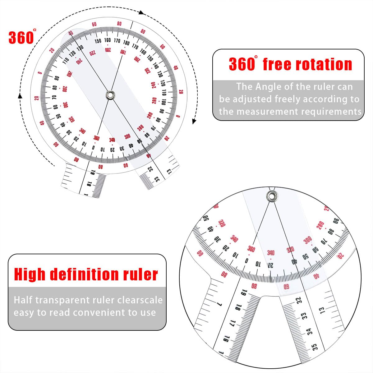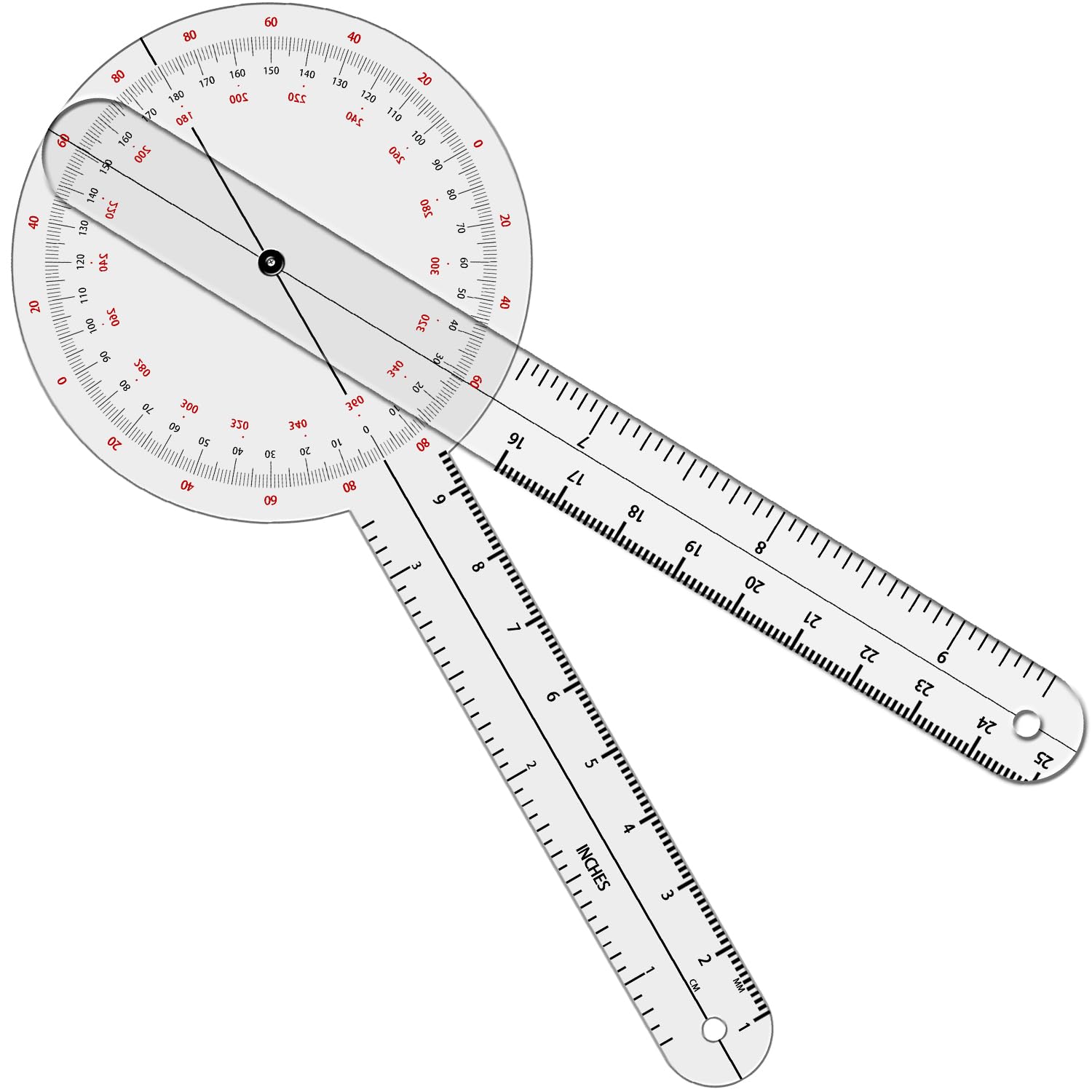 Primary Material: Made from transparent plastic, it is lightweight and easy to carry. The semi-transparent design of this angle finder tool for physical therapy allows for quick and efficient reading and recording of angle data.