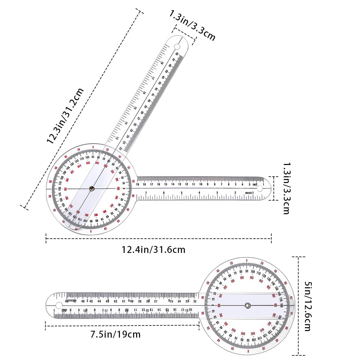 Accurate Readings: The digital and clear markings on the 360-degree goniometer allow for precise measurements. It can be placed directly on limbs or joints to observe the axis and range of motion. The arms of the dynamic joint goniometer are measured in inches and centimeters for easy reading.