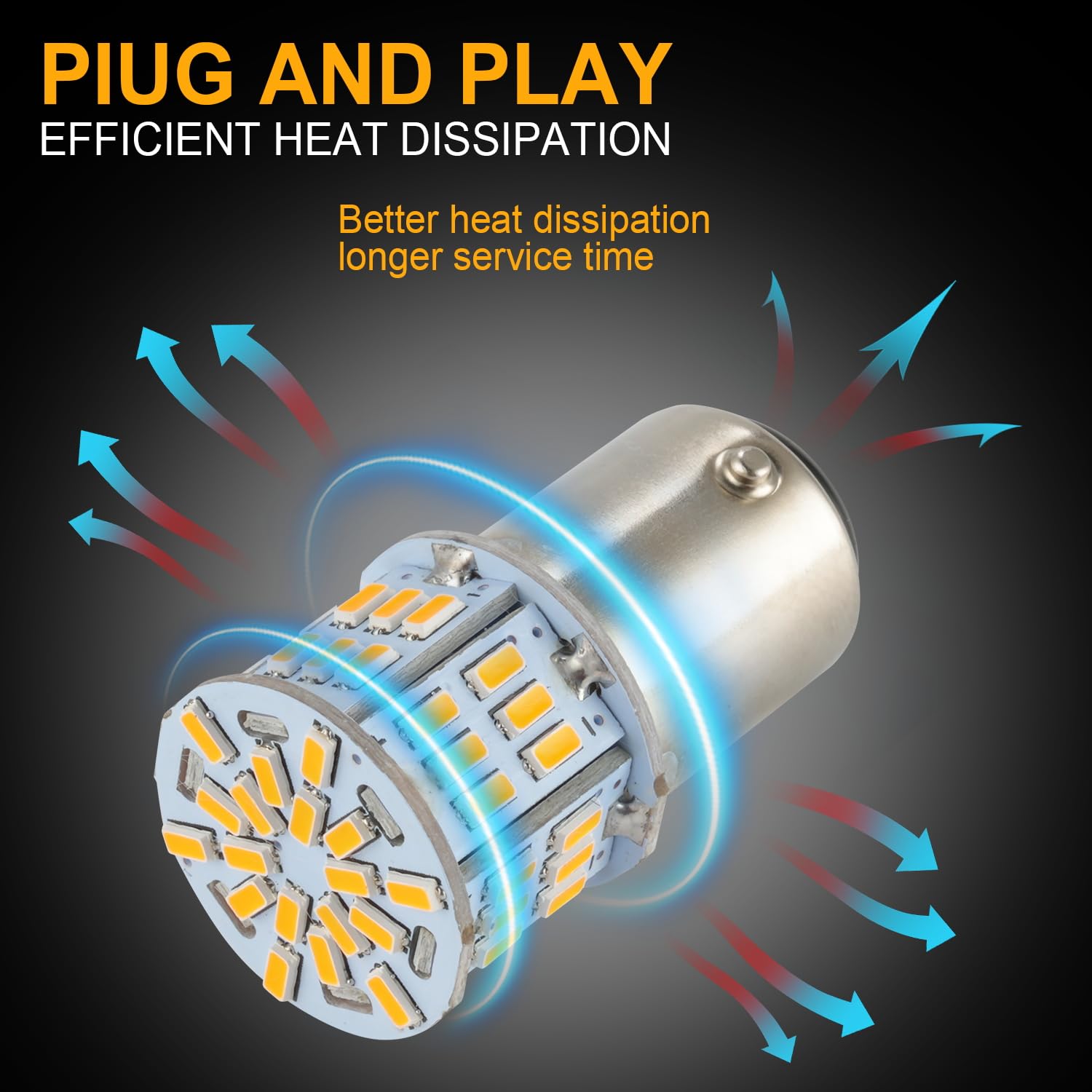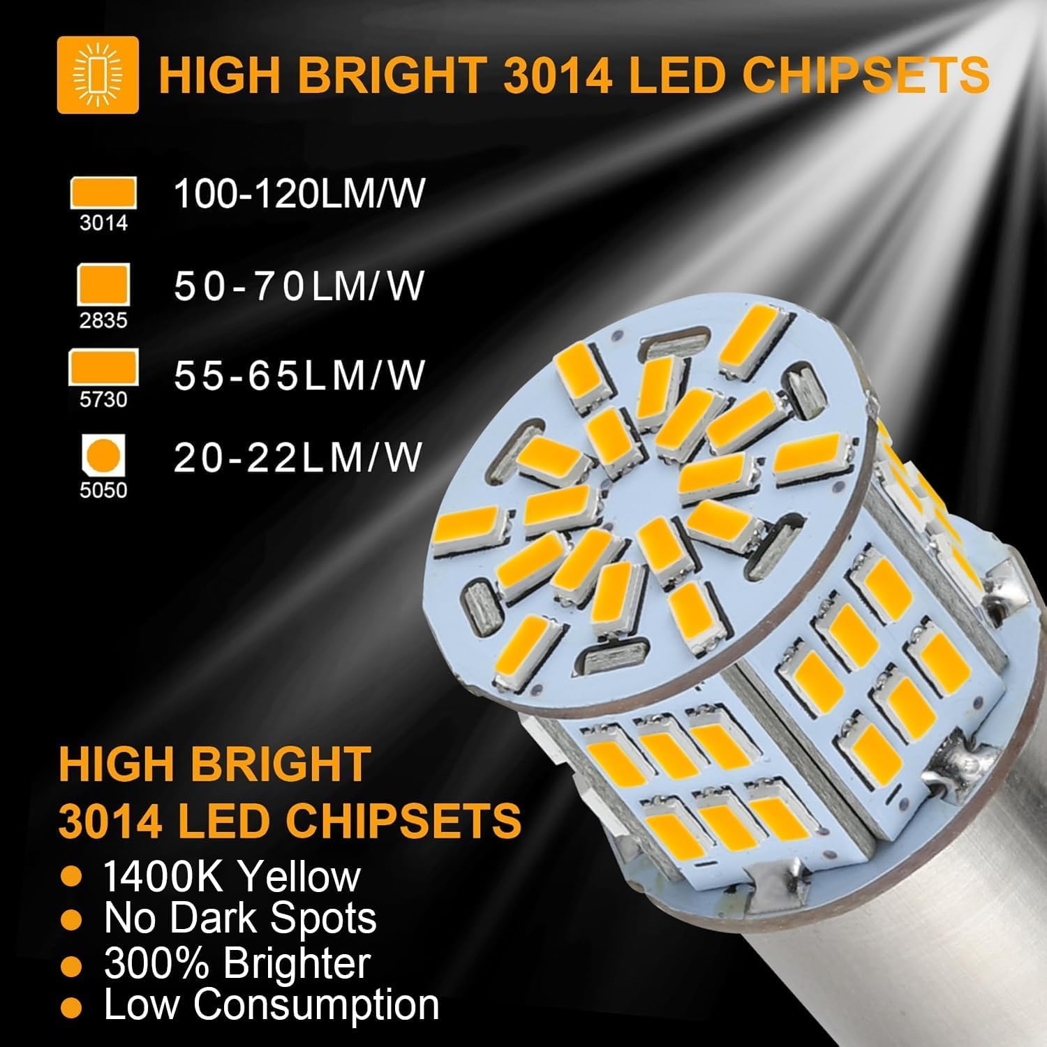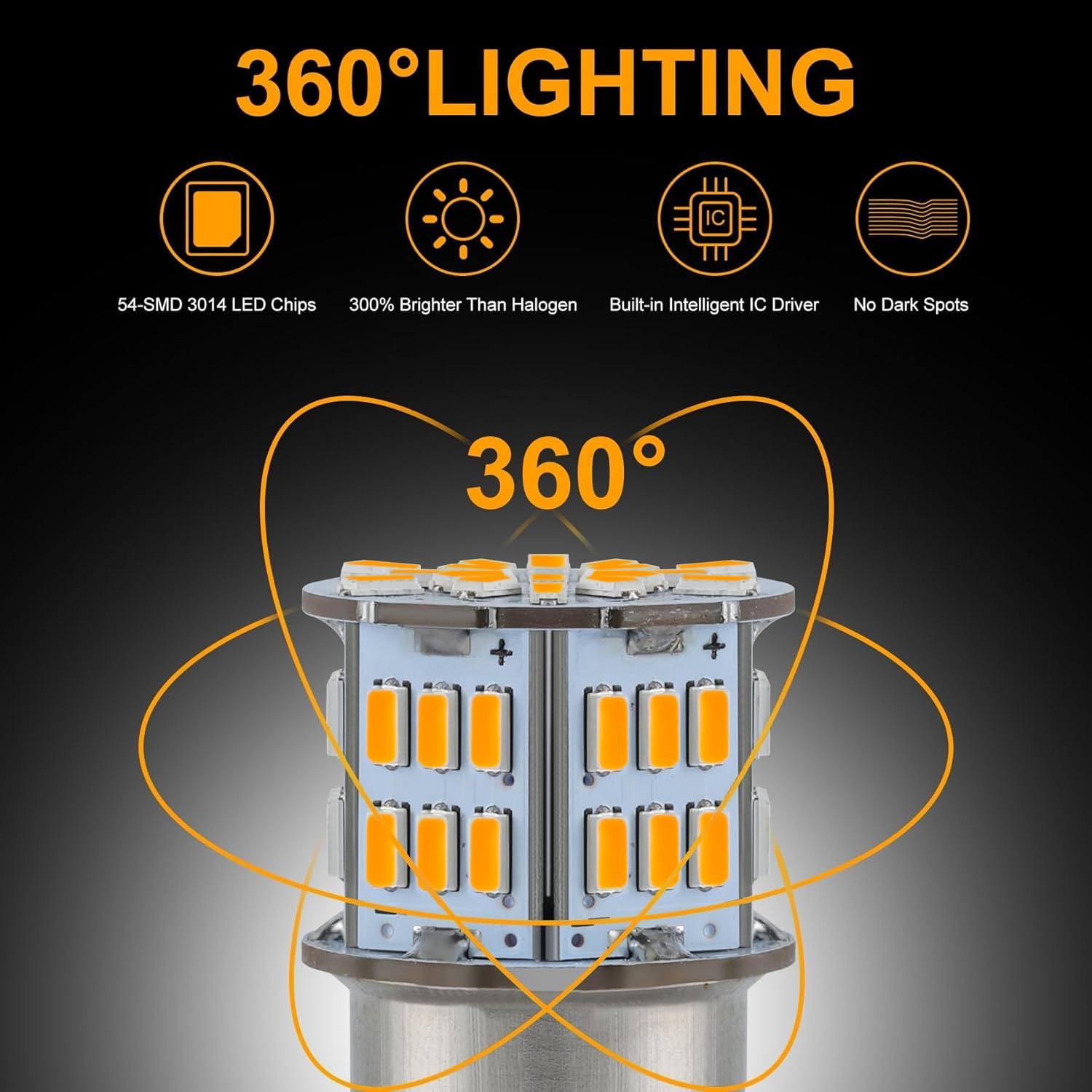 300% Brighter: Our 1156 bulb has 54 pieces of 3014 led chips on it, 360 degree lighting angle, no blind spot.