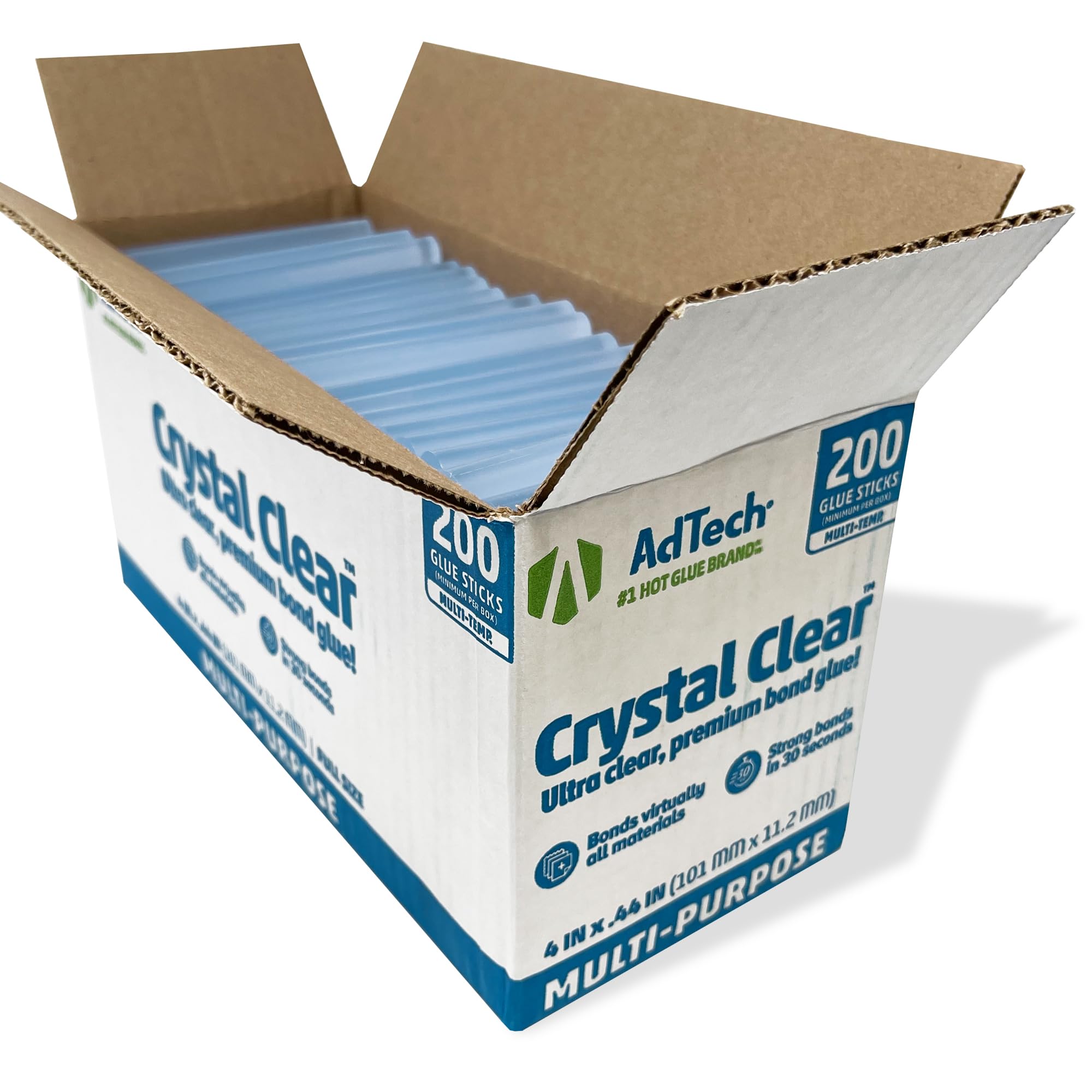 AdTech Crystal Clear Mini Glue Sticks bond to almost any materials whether its paper, metal, plastic, wood, fabric, ceramic, foam, lace, ribbon, synthetic fabric, and more! It bonds in less than 30 seconds and dries clear. Length: 4 inches, Diameter: 0.28 inches. Fits all mini size glue guns.