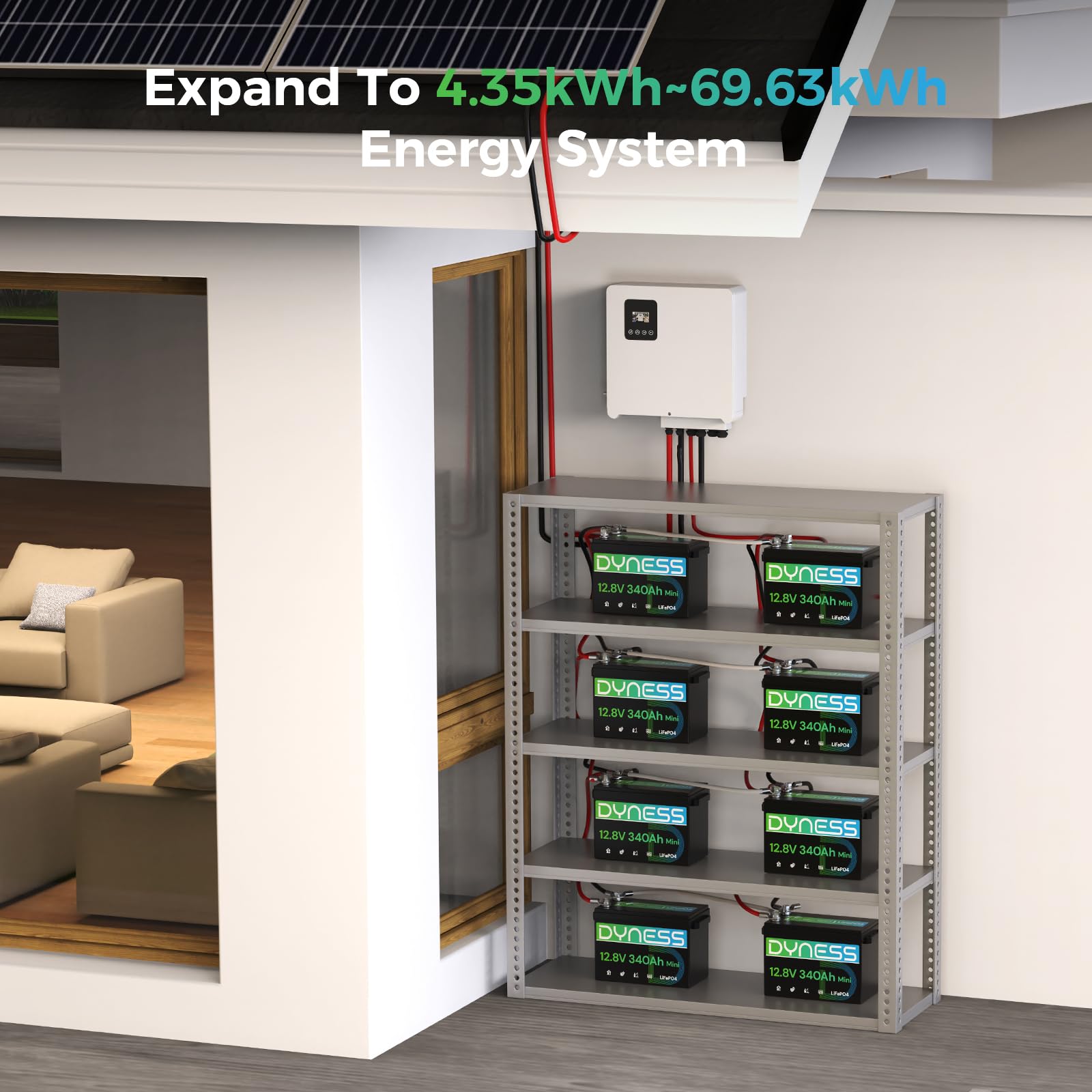 【Max. 4352Wh Usable Energy】Dyness LiFePO4 battery built-in high energy density A+ grade battery cell, which delivers Max. 4352Wh usable energy, exceptional longevity and higher safety. With: ①10-Year Lifespan: Lasts up to 6X longer than standard lead-acid batteries.②Superior Energy Density: Packs 3-5X more power in the same space vs. traditional batteries.③Rigorous Safety Assurance: Independently tested and certified to global standards including FCC, CE, RoHS, and UN38.3 for reliable operation
