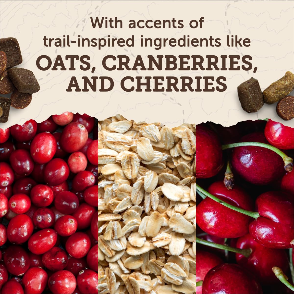 Zuke’s Trail Mix resealable dog treat pouch offers a fun mix of shapes and colors containing accents of trail-inspired ingredients like oats, cranberries and cherries