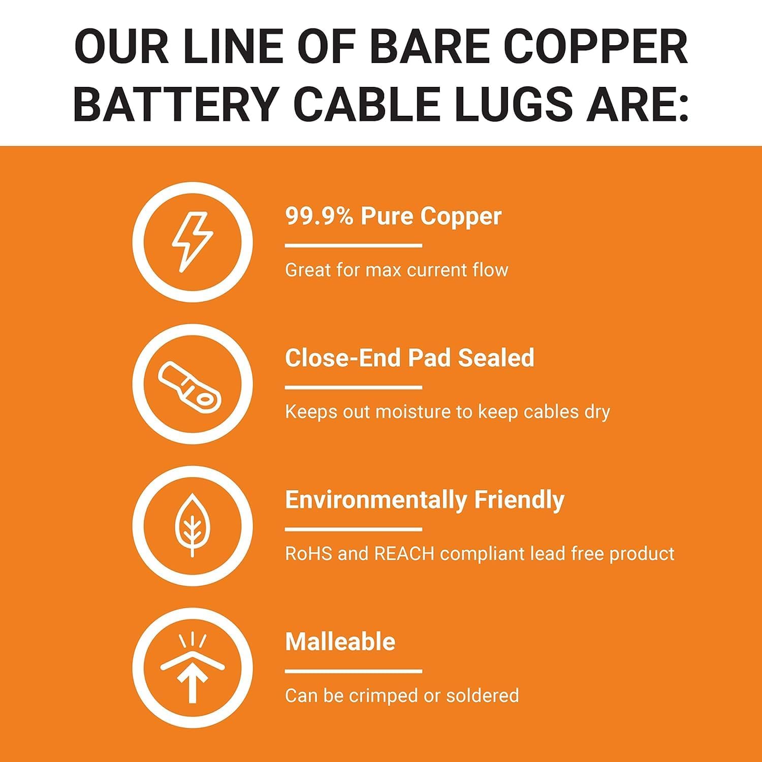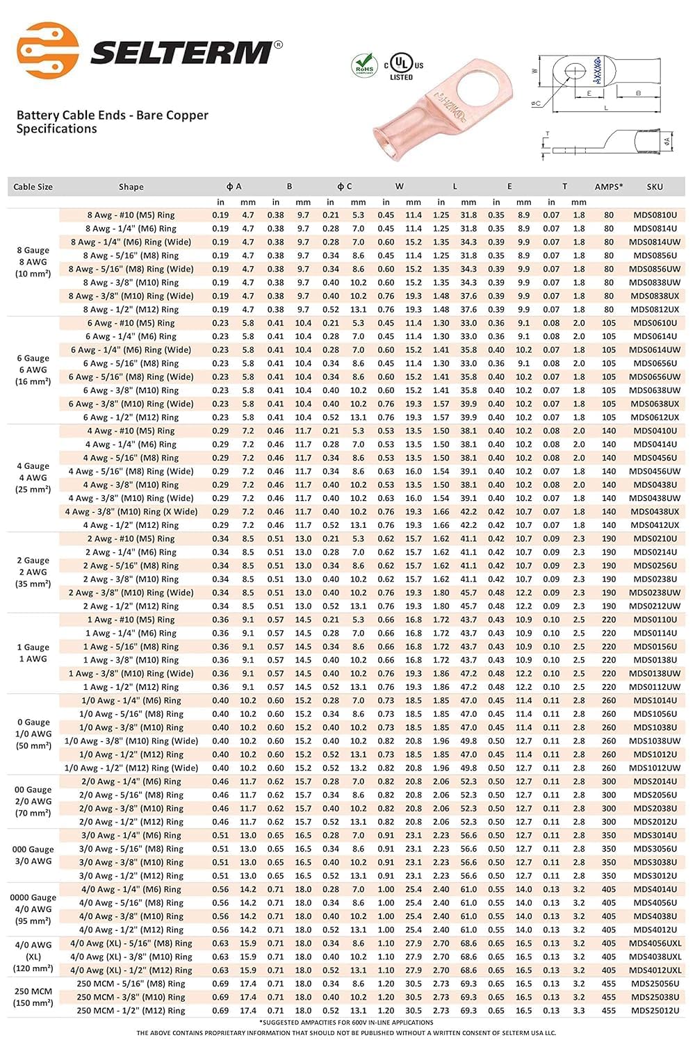Secure and Reliable Connections: Ensure strong and dependable battery connections with Selterm 4 AWG ring terminal connectors. These lugs are designed to provide a solid link between battery cables and terminals, preventing power loss and voltage drops.