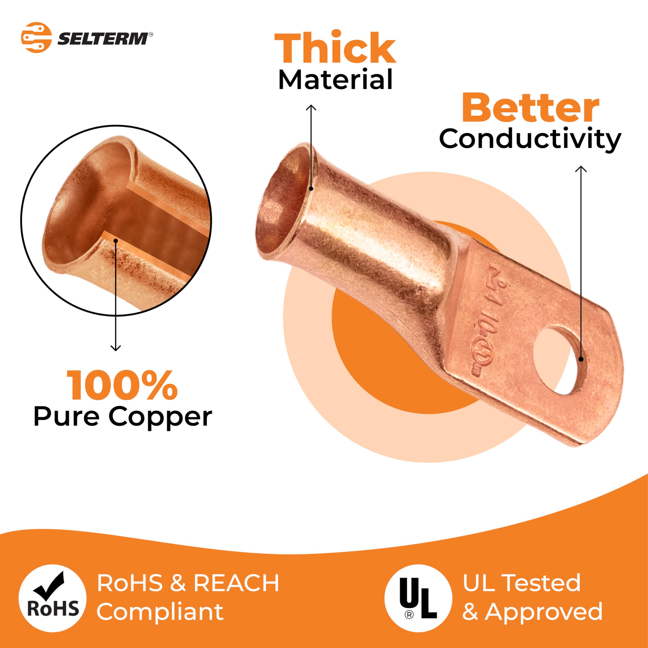 Strong Connections for Better Performance: Designed to perfectly fit #10 studs, Selterm battery lugs provide a secure connection. This helps maintain good electricity flow, reducing energy waste and ensuring reliable performance across various batteries and equipment.