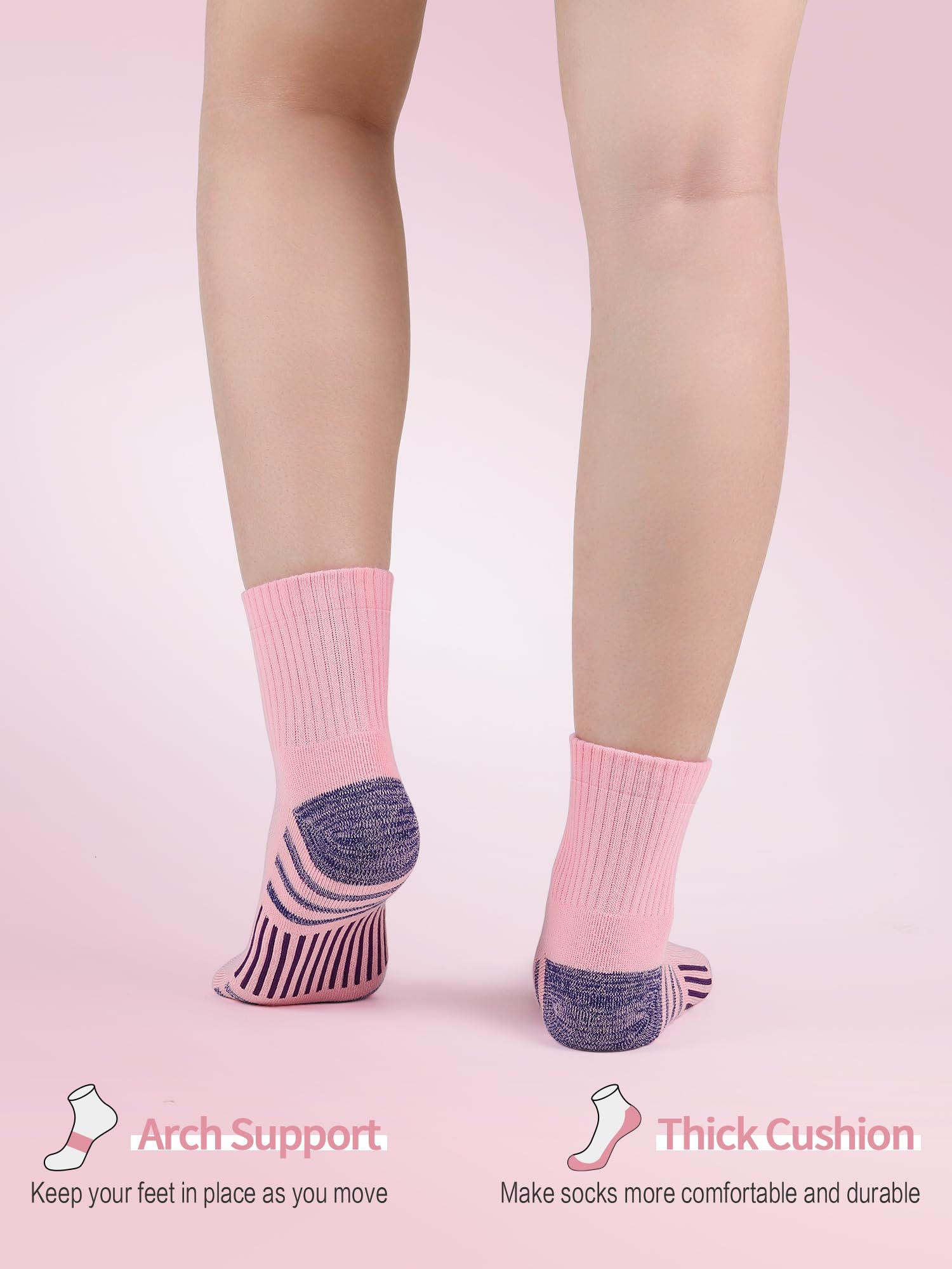 Arch Support & Non-Slip:The athletic socks with arch support provide good elastic stretch, holding socks stay in place when you walking, running, cycling, hiking and preventing any slipping.