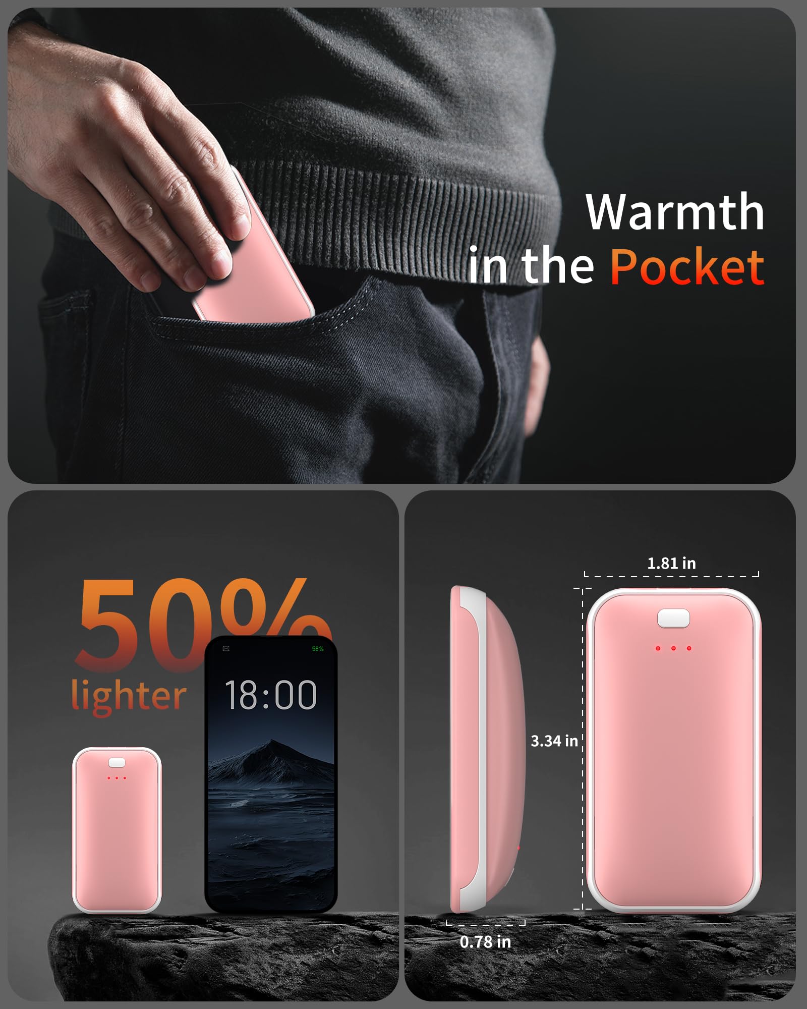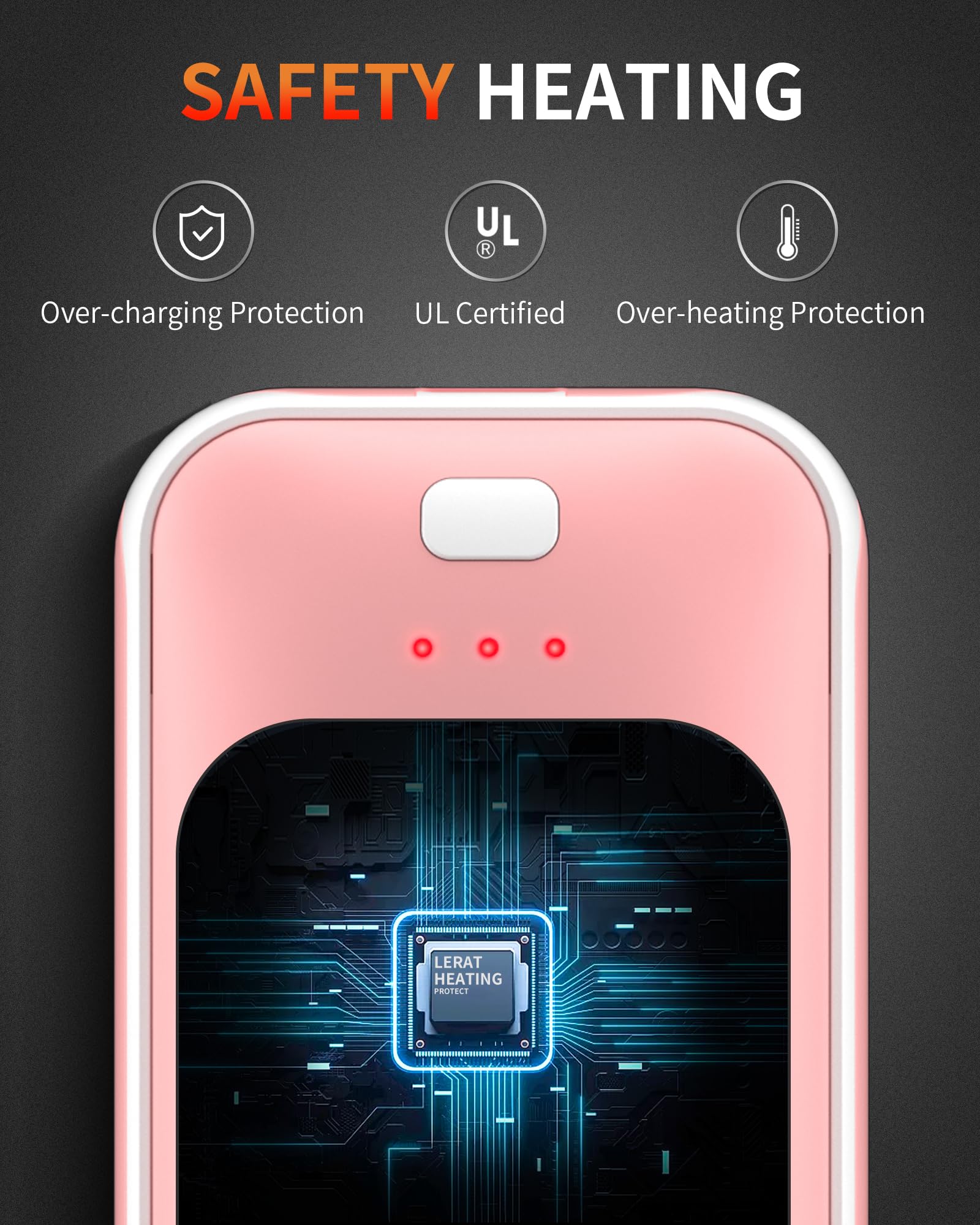 【SAFE & RELIABLE】 Made with advanced lithium batteries, aluminum, and ABS materials, our hand warmers meet rigorous UL, CE, and FCC safety standards. With multiple protection features and precise temperature control, you can use them confidently.