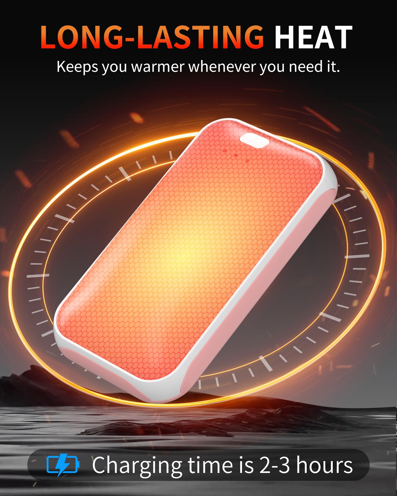 【All-Day Warmth & FAST Charging】 Equipped with premium chips and dual 2000 mAh batteries, our hand warmers offer long-lasting warmth while staying lightweight. The dual-ended charging cable ensures a quick charge in just 2 to 3 hours, so you’re always ready to stay warm.