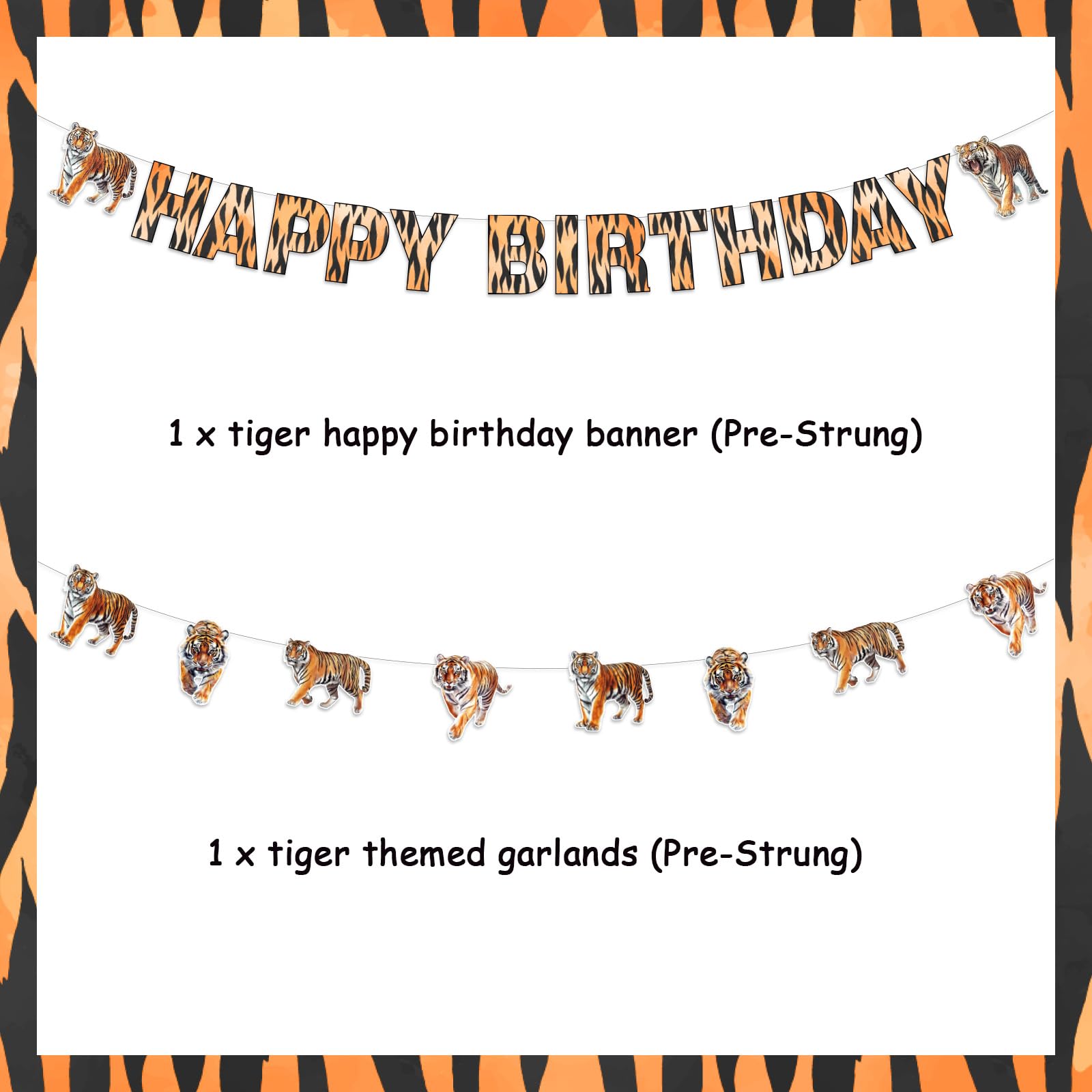 Package include: You will get 1*tiger themed garlands and 1*tiger happy birthday banner