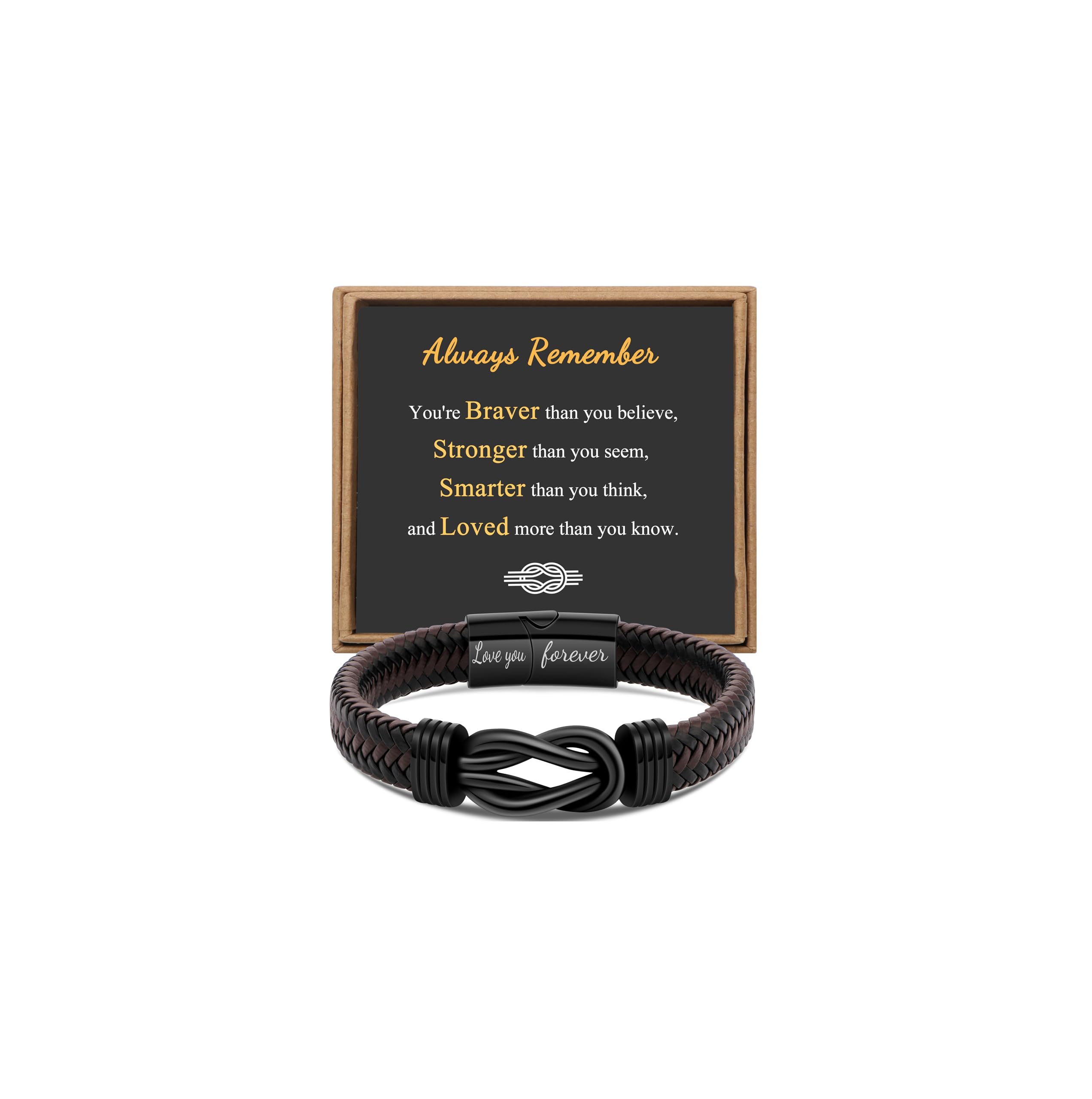 Special Design โจ The leather bracelet is designed simply and generously, with brown braided rope and Infinity Knot, Showing off fashion. Men bracelet is engraved with โlove you foreverโ, which is able to convey the meaning of your love. This cuff bracelet will surely melt their heart
