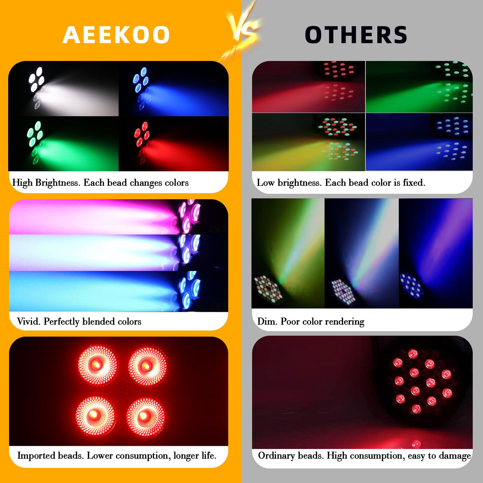 [Brighter & Colorful]: AeeKoo 25W Stage Lights are made of high quality imported RGBW LED beads, which are brighter, more purer colors and lower power consumption. With vibrant colors and smooth color mixing effects, this led par light have will impress you and add sparkle to any party!