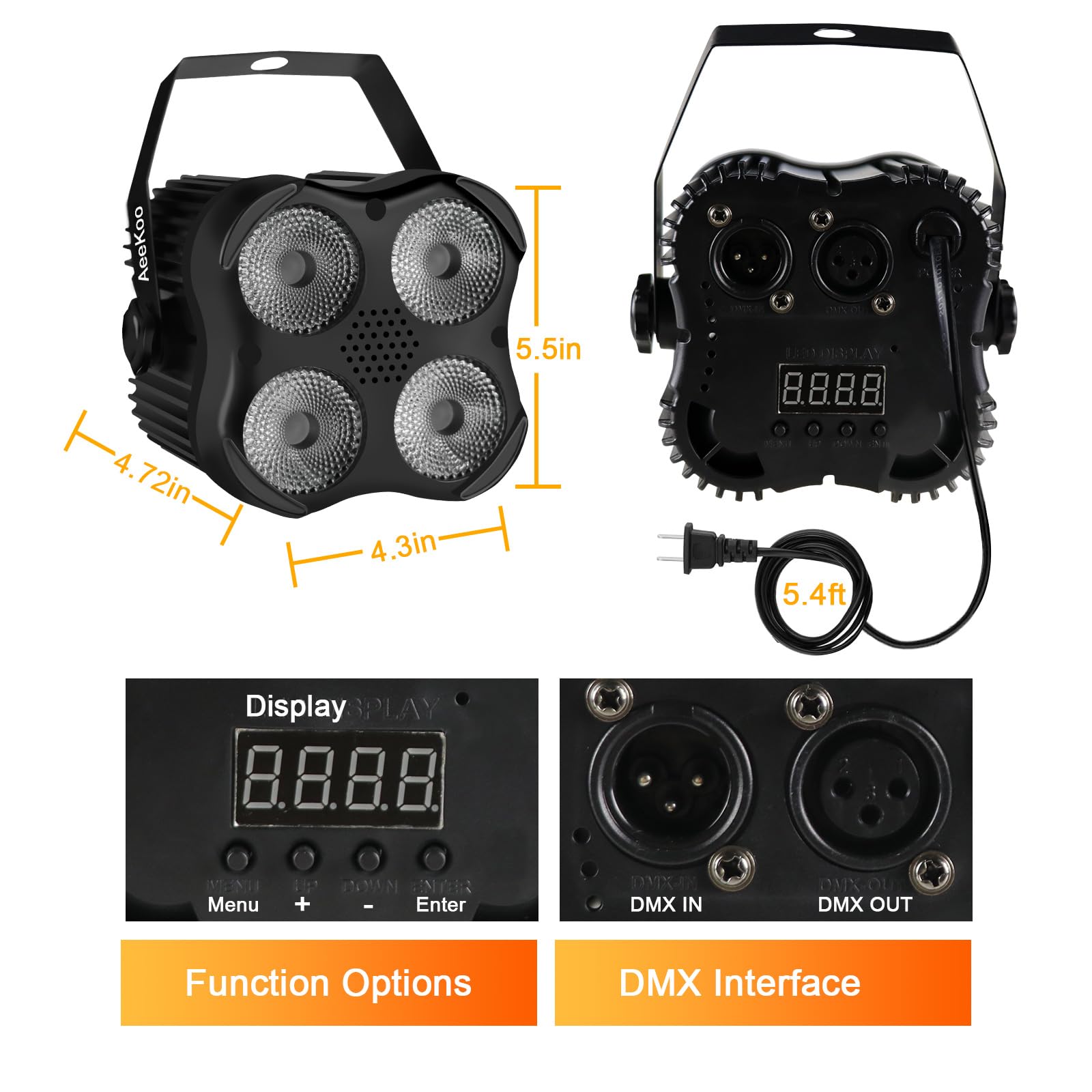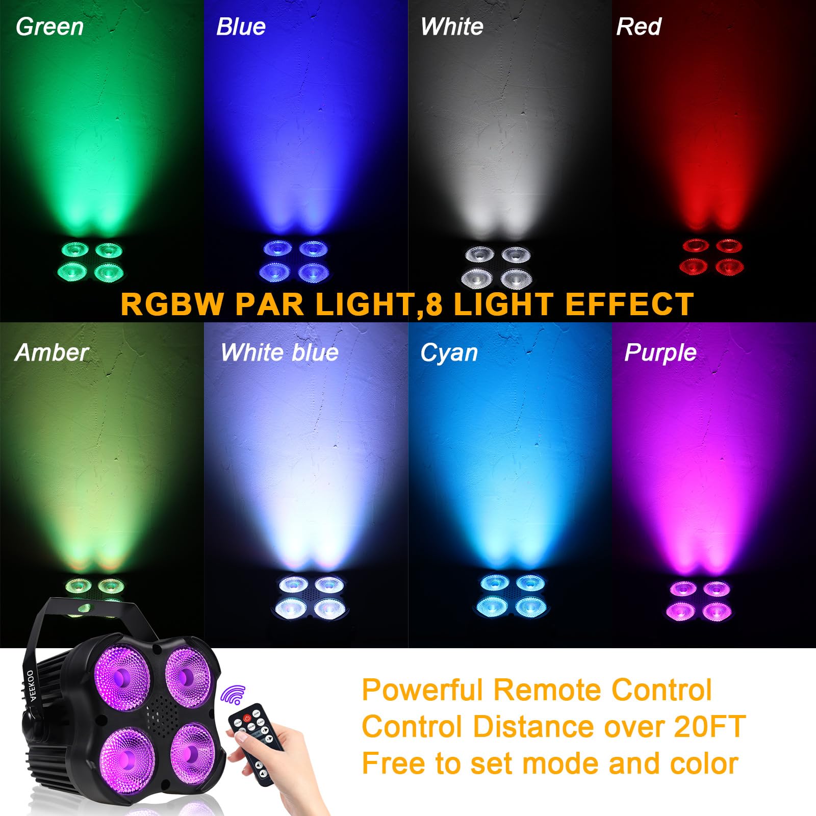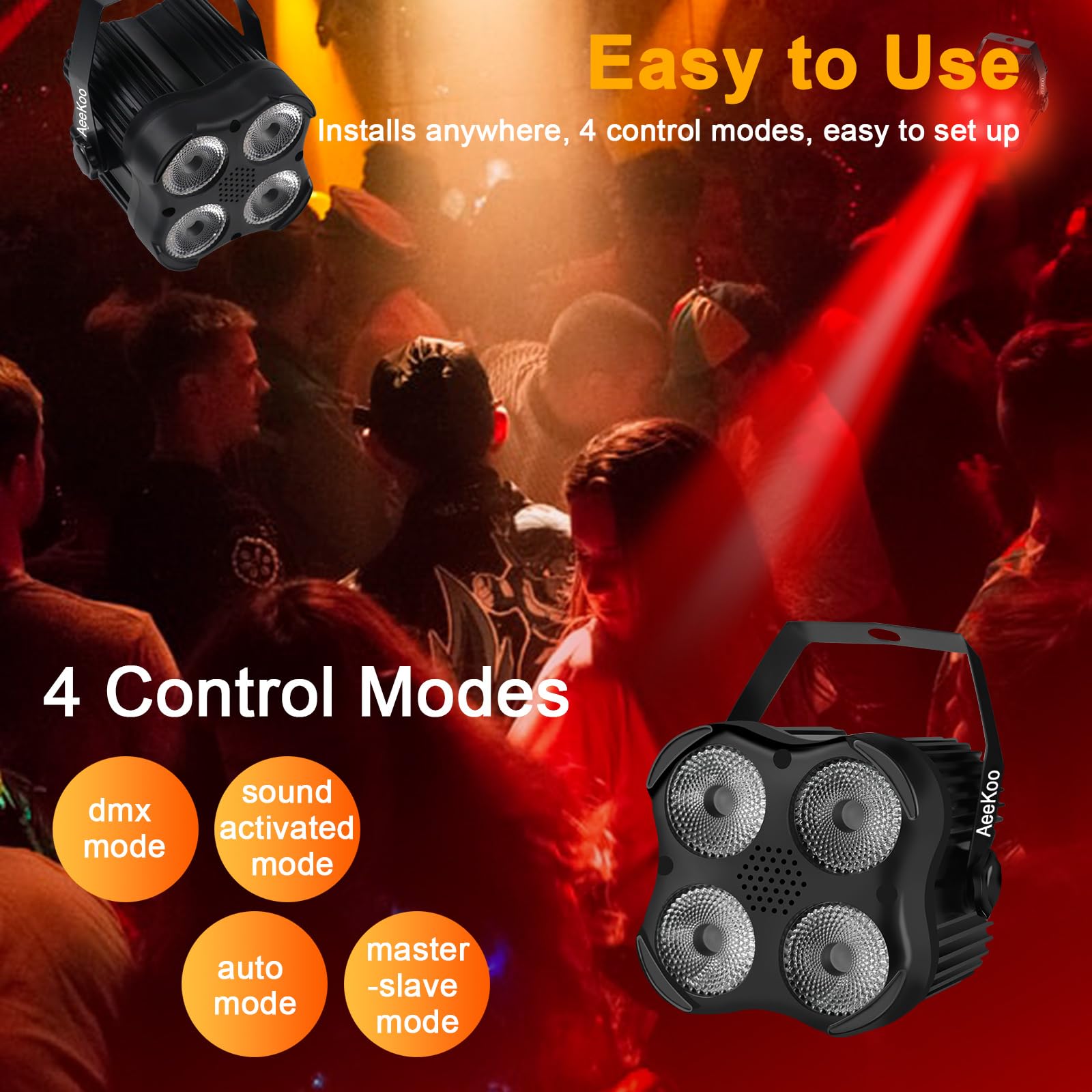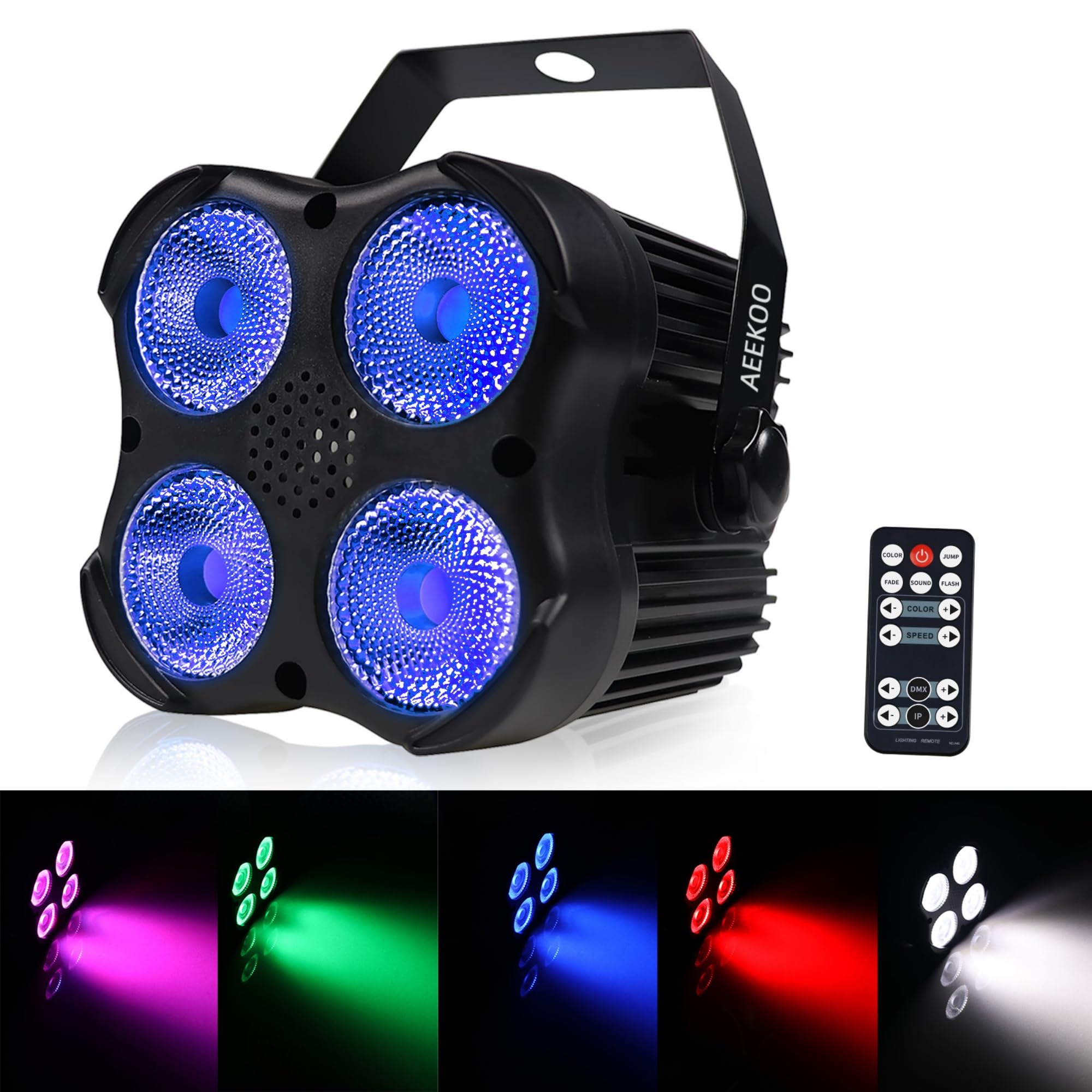 [Remote & DMX Control]: The AeeKoo Par Can Light is easy to use and has multiple control options, including a powerful RF remote control, a DMX512 controller and a rear panel. Multiple Par Lights can be easily controlled with one remote. Professional DJs and general users can use these lights easily.