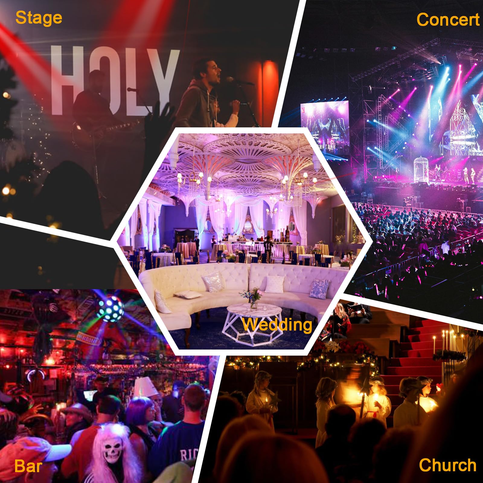 [ User-Friendly & Widely Application]: DJ par lights are compact and lightweight, easy to carry and move around. They are ideal for mobile DJ, bands, club, theaters, wedding, dance halls, Christmas, discotheques,family gatherings and vlogging.
