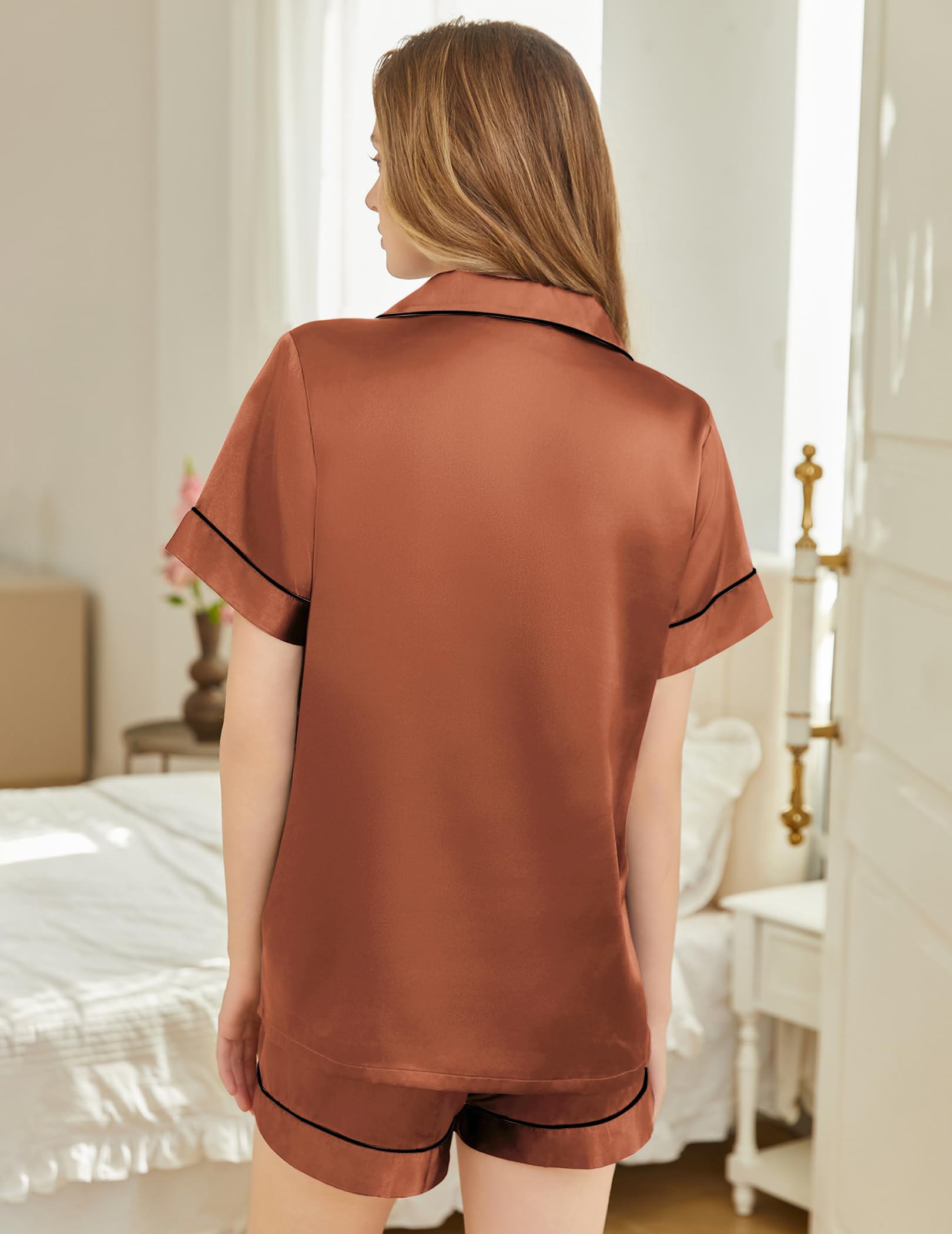 Fit Occasion: Silk satin pajamas set for women are ultra cozy for leisure wearing and easy to match. Perfect for pajama party, girls' day, bridal sleepwear, indoor, living room, bedroom, hotel, vacation, travel, school and fun family moments. The stylish short sleeve loungewear top can also be paired with blazers, jeans and skirts, elevating your office/casual/daily looks.