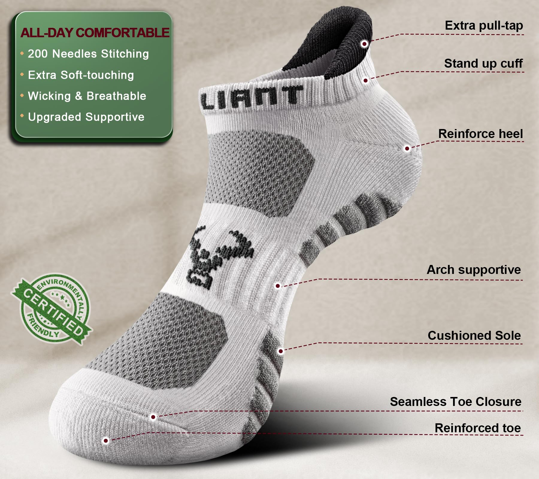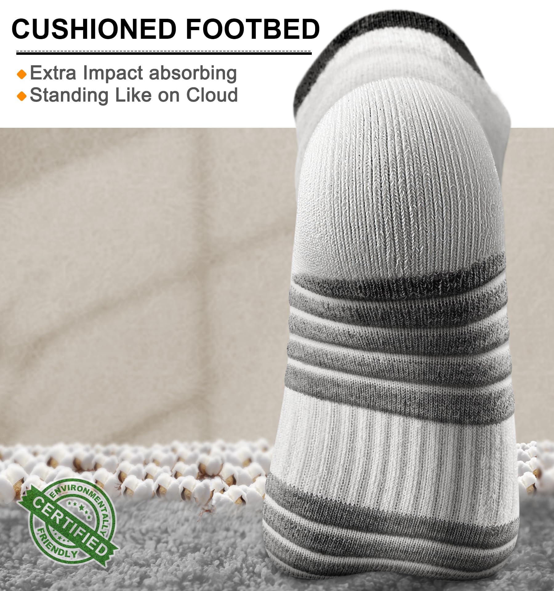 CUSHIONED FOOTBED--Experience superior comfort and support with our socks; The full-circle terry cushioning provides excellent bounce and shock absorption,making every step a delight;