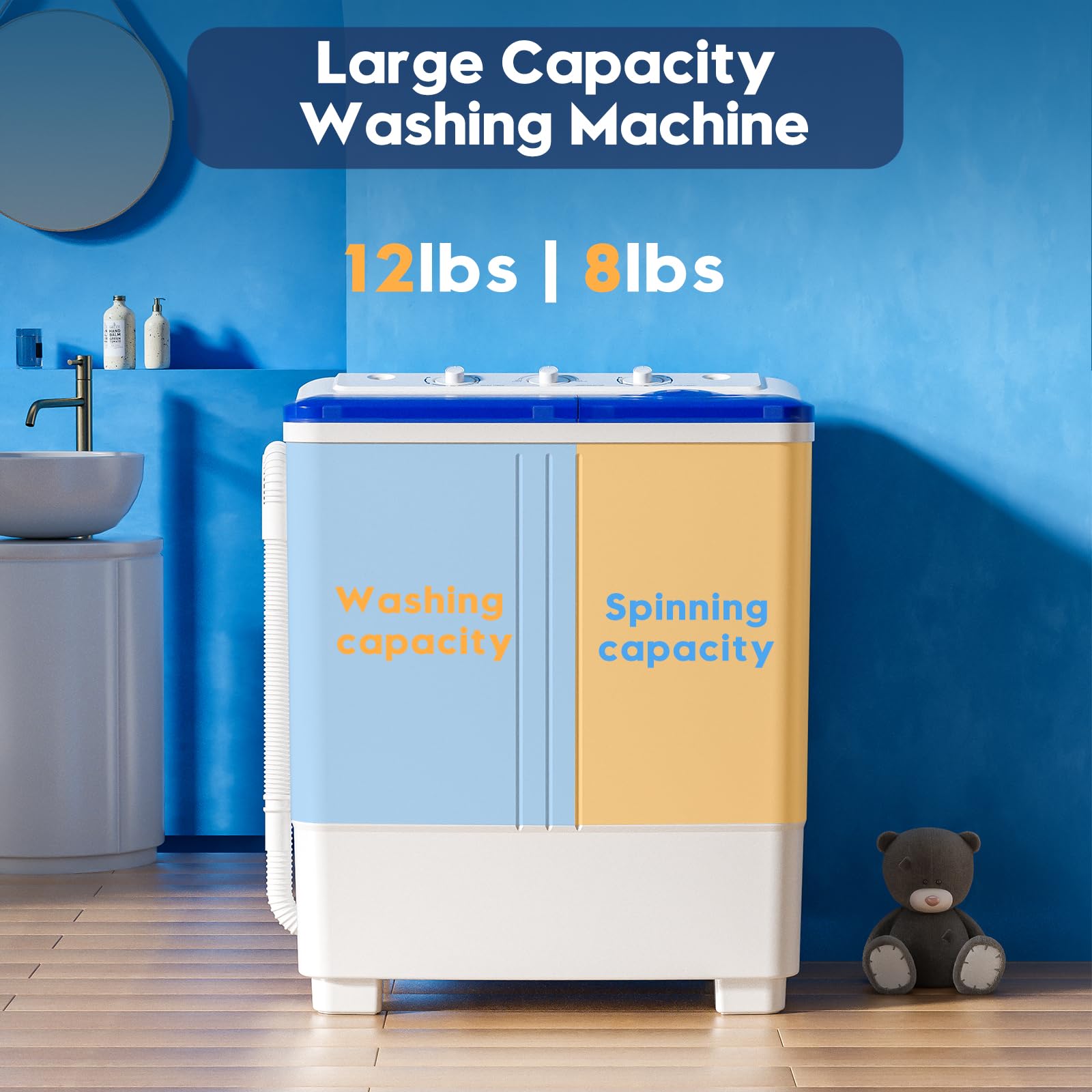 [Powerful Performance] Equipped with a 1300 rpm powerful motor, clothes can be washed quickly and efficiently. Washer: 12lbs, Spin Cycle: 8lbs. The transparent window allows you to see the process of washing or spinning. Our mini washer machine can achieve low consumption and save water, while free your hands.