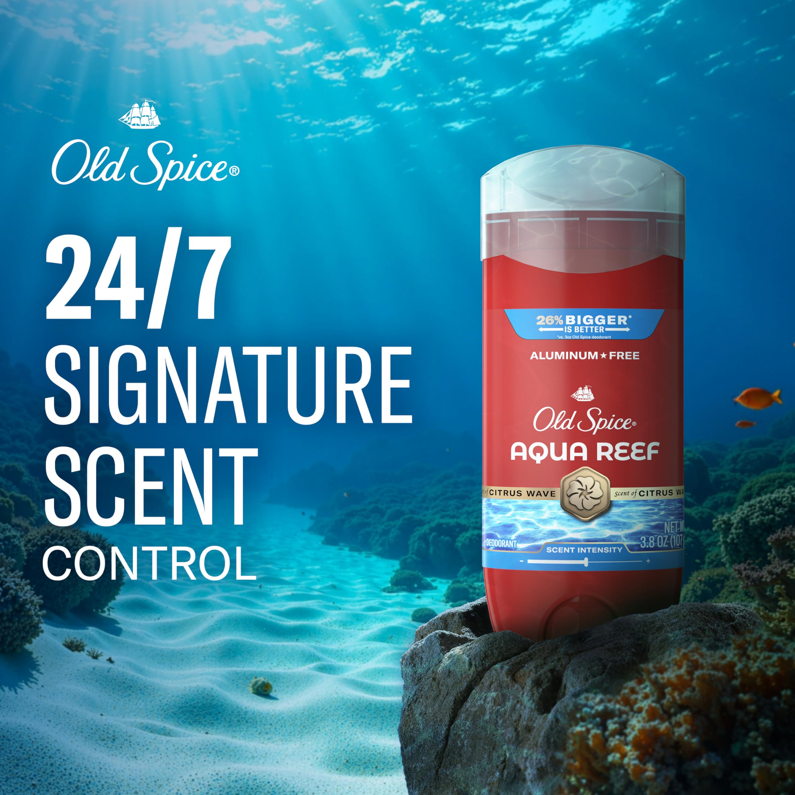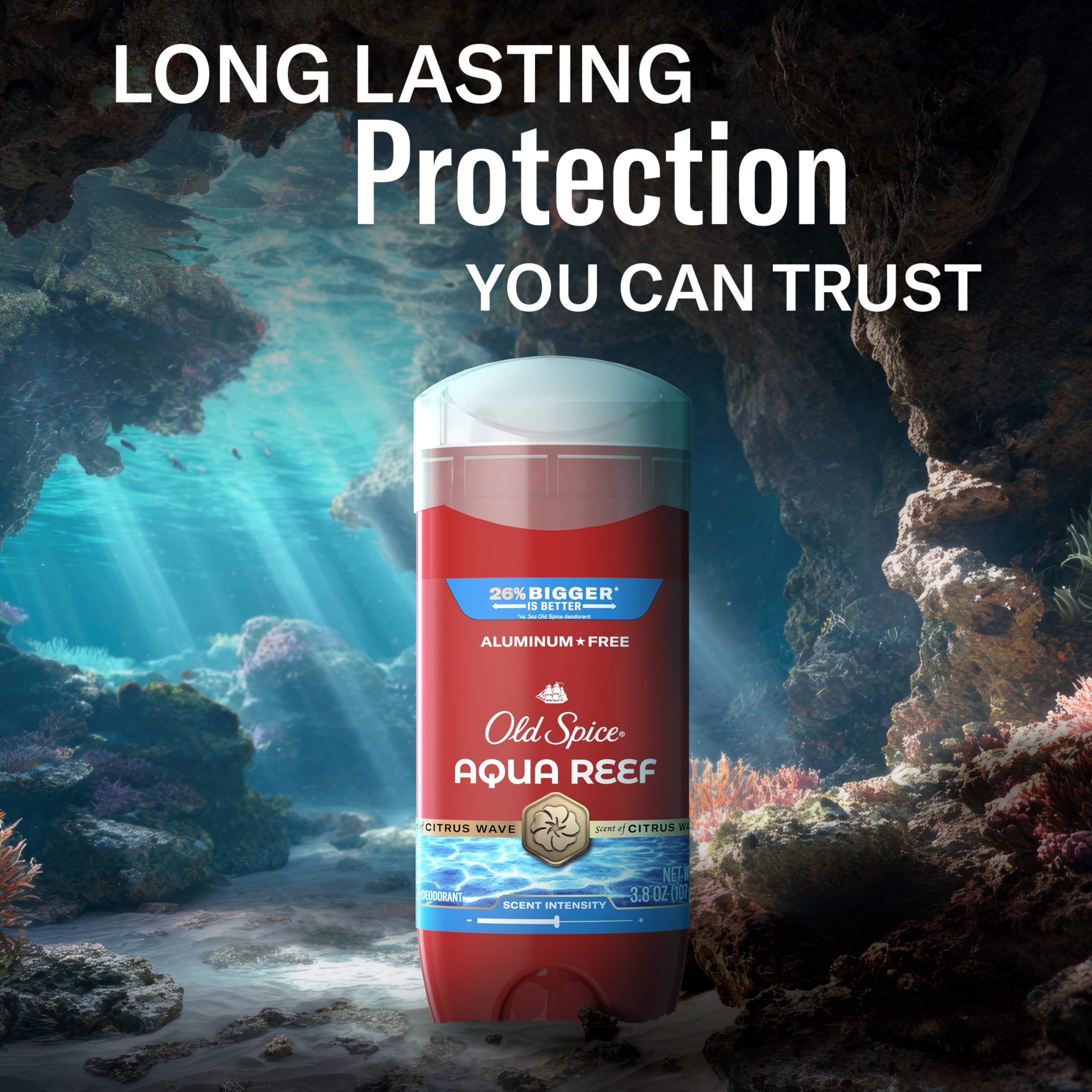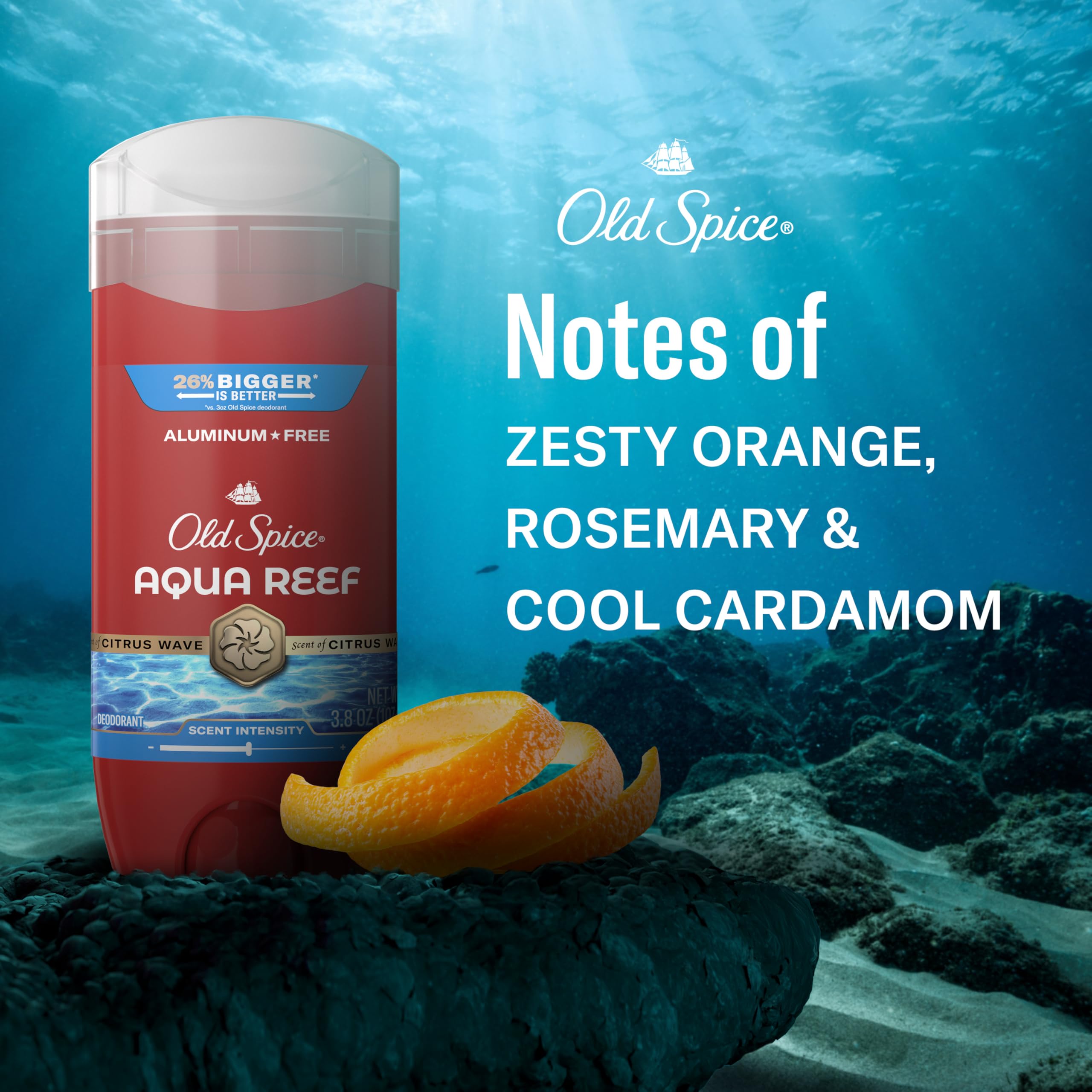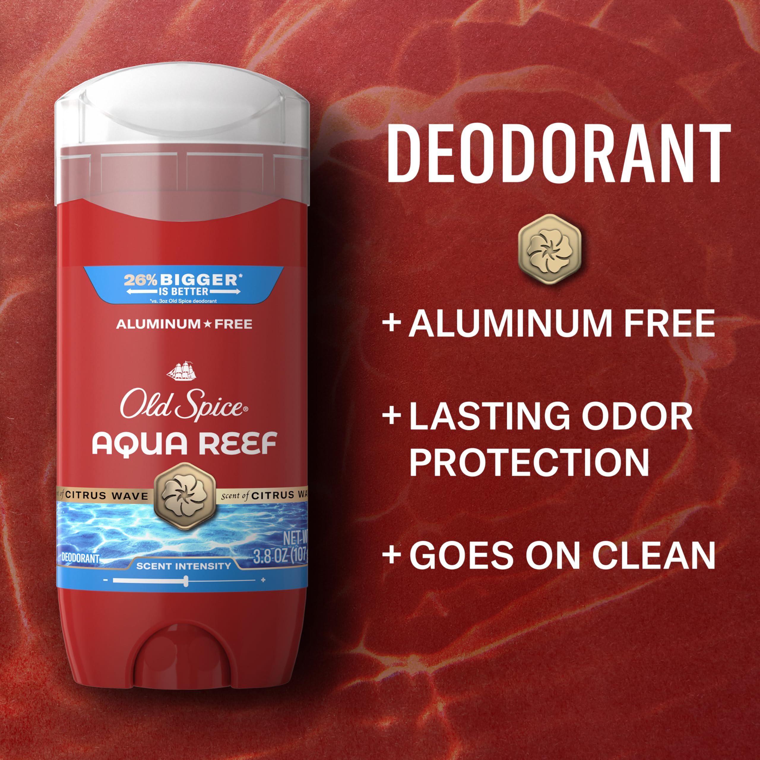 Old Spice Men's Deodorant reduces underarm odor for 24 hours. Turn the base to raise the deodorant and wipe armpits for long-lasting freshness. With your effortless ambition, the world is your oyster, and Old Spice Aqua Reef is bringing the shucking knife with a suave and sociable scent that doesn't know the meaning of faux pas. Old Spice Men's Deodorant overpowers even the burliest stink with overwhelming good-smellingness. Fade-resistant scent technology lets you smell your fresh scent all day the way other people smell your fresh scent all day. It's the Old Spice Red Collection - Exceptional Scents for Exceptional Gents.