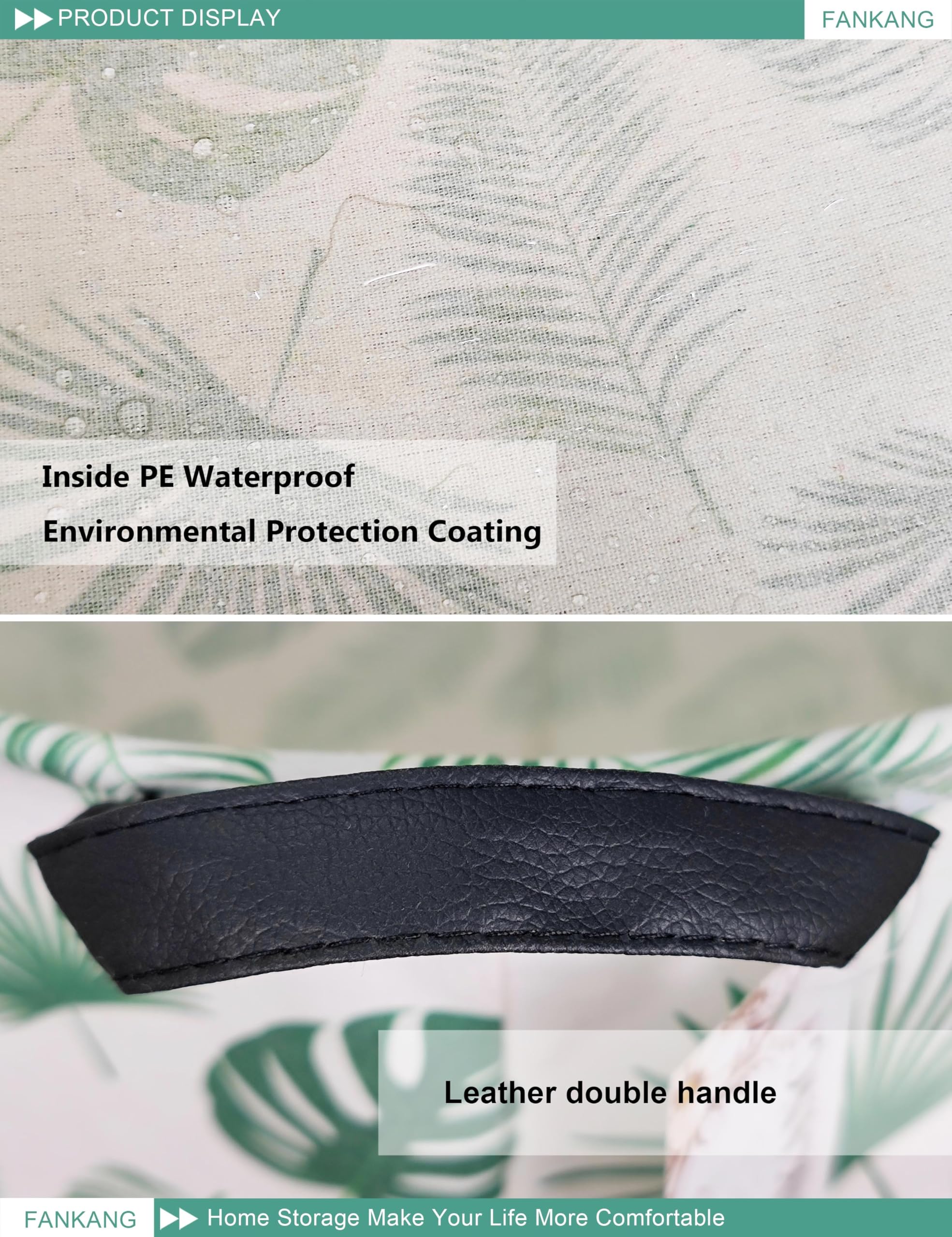 Material: Polyester canvas + flax + PE environmental protection waterproof coating+Handle, lightweight and portable.