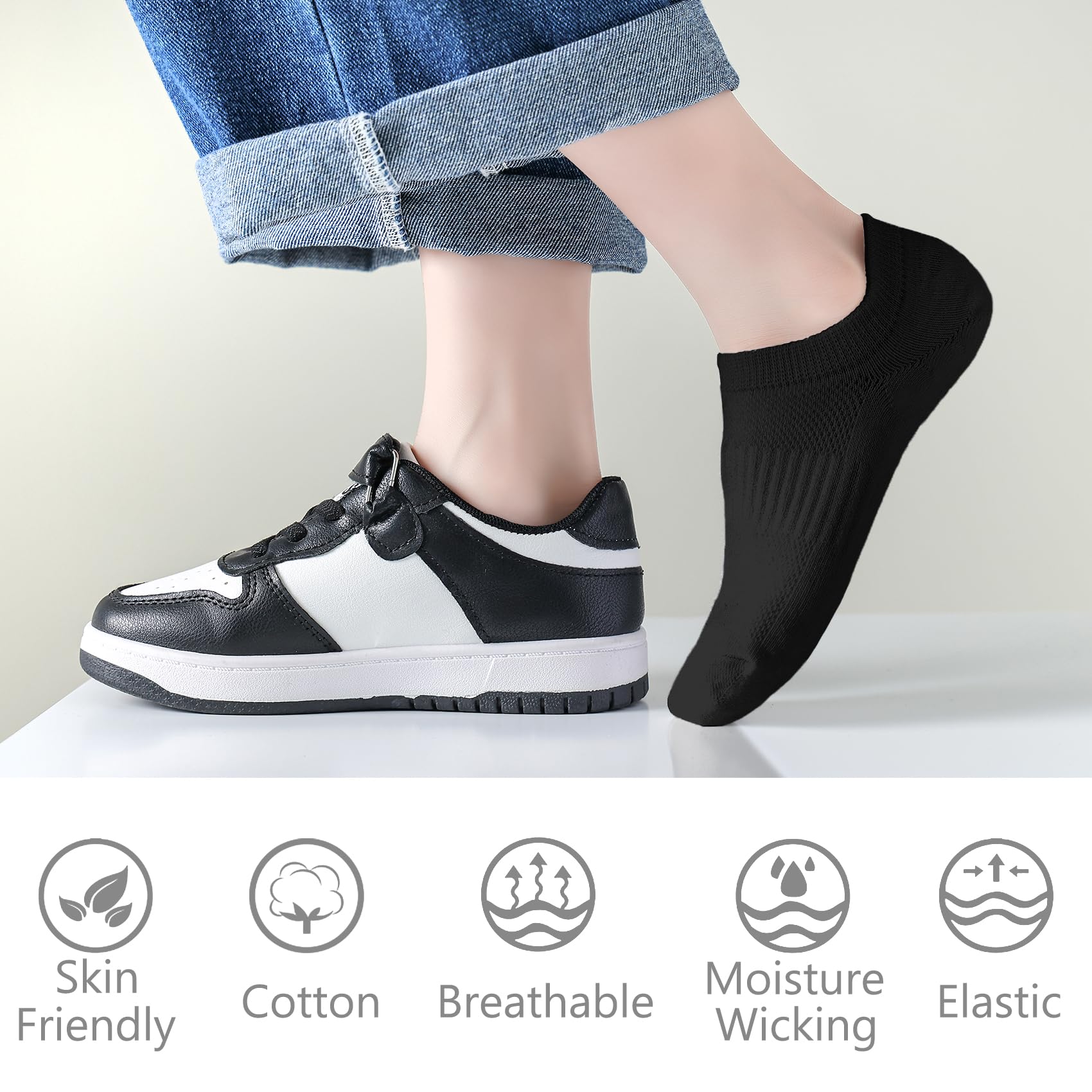 【 Kids Anti-slip Socks 】: Our cotton no show socks with non-slip design, 3 silicone stripes at the heels keep it in place. Elastic Cuff and 3D Y shape close-heel design enhance stability while making the sock fit better, and prevent socks from slipping.