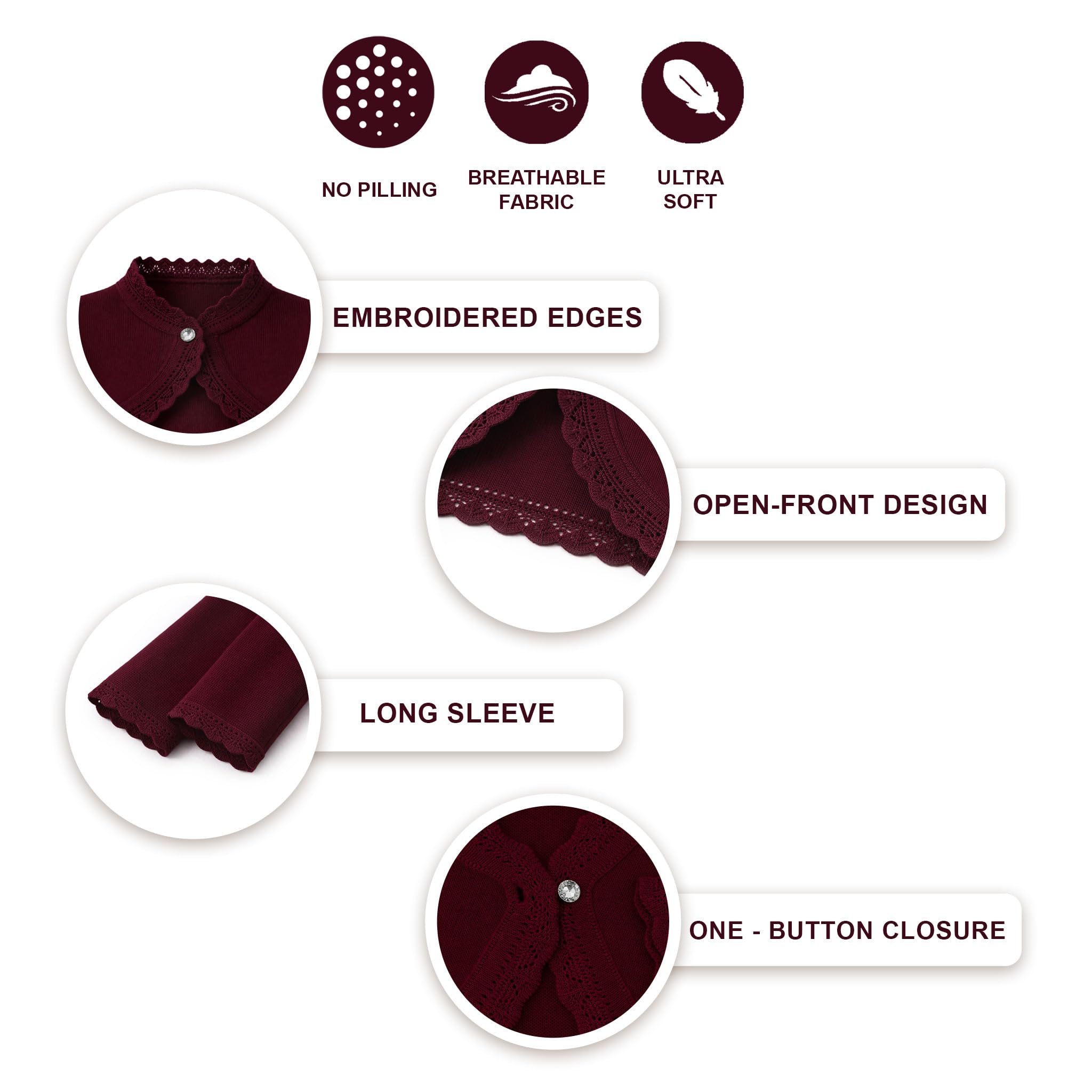 Long sleeve eyelet hem design bolero is perfect for over any dress
