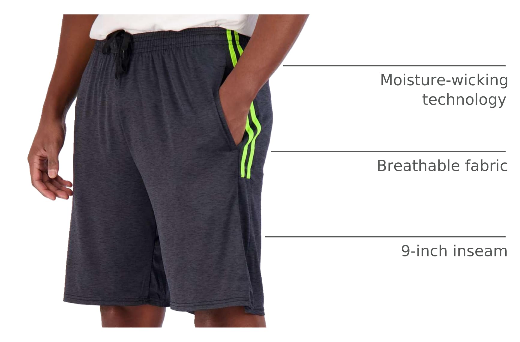 5 Pack Menβs Dry-Fit Shorts: Real Essentials menβs 9" inseam shorts for gym, basketball, running, soccer, tennis, pickleball, cycling, baseball, training, walking, jogging, or MMA workouts.