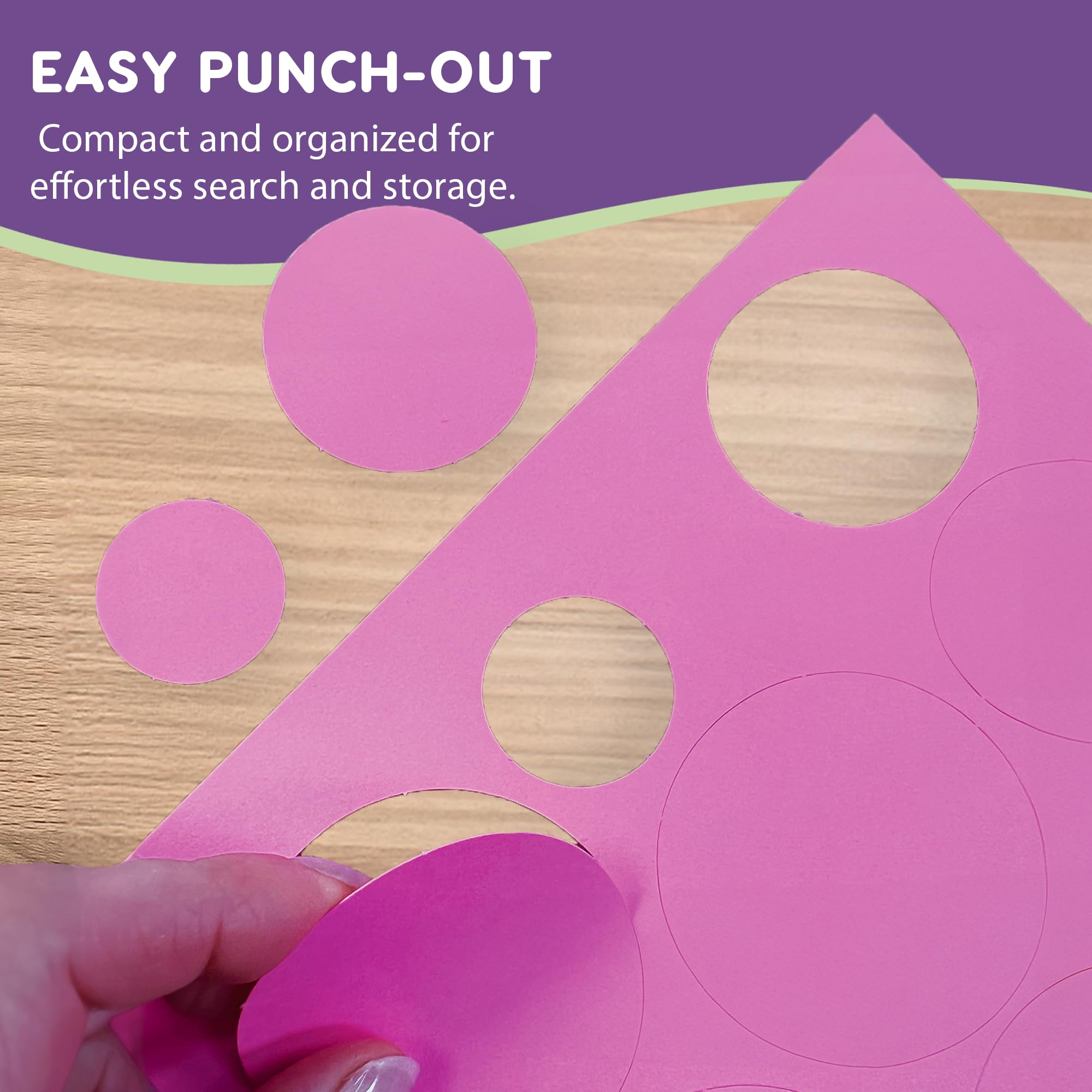 DISCOVER AN ABUNDANCE OF SHAPES: Dive into creativity with 676 easy punch-out geometric shapes, in assorted bright NEON pink, yellow, orange, and green colored card stock. Unleash your imagination as you explore Circles, Squares, Ovals, and Equilateral Triangles, each available in three convenient sizes—small (1-inch), medium (1.5 inches), and large (2 inches). Delve into design with the ovals, allowing for versatile and dynamic compositions in your crafting endeavors.