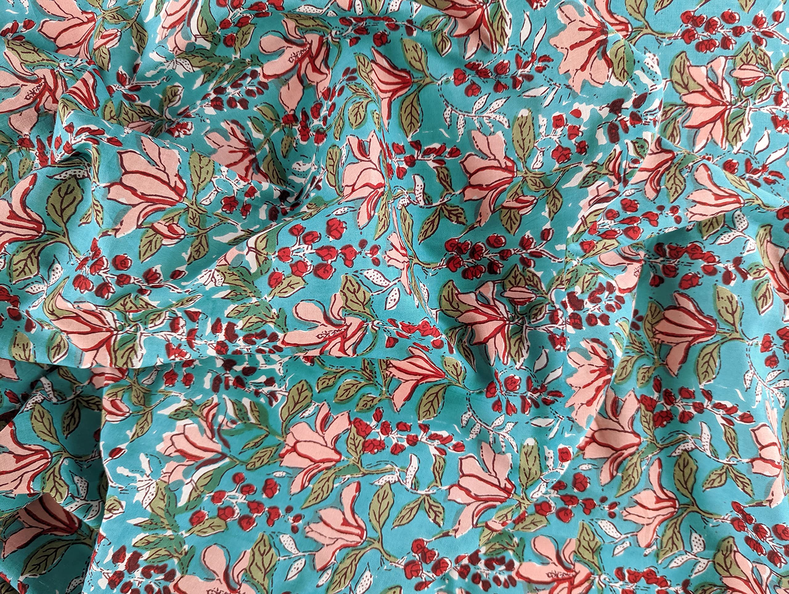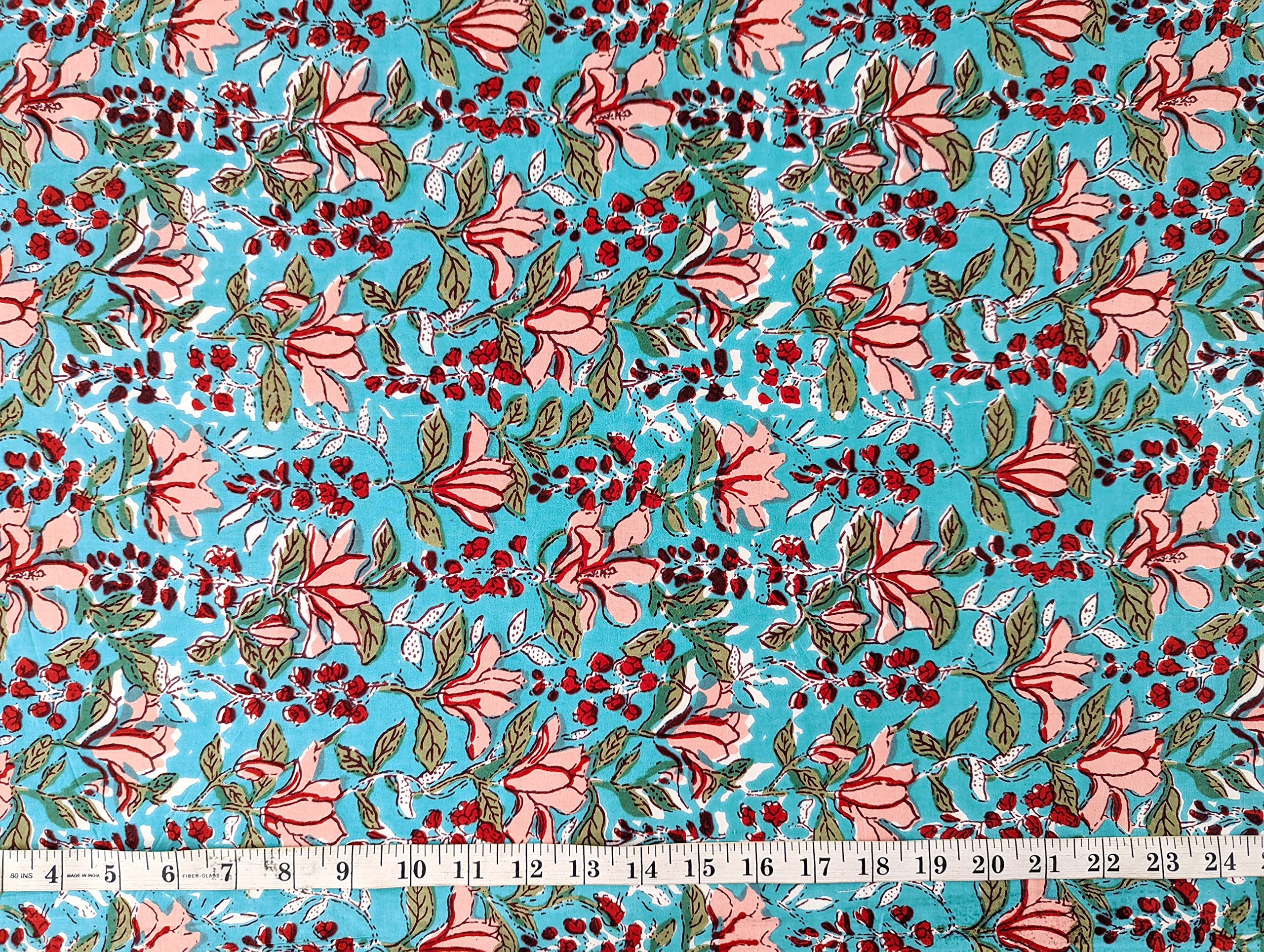 This is a precut piece of 1 yard of an Indian cotton fabric. This is a hand printed fabric using wooden blocks or screens. The width of the fabric is 42 inches. It is a pure cotton yardage and is a thin light weight cotton. Ideal for garments and light home linen. Use this unique and beautiful printed cotton for your next sewing project. If you order 2 quantity, you will receive 2 pieces of cut fabrics of 1 yards each. You will not receive a continuous yardage.
