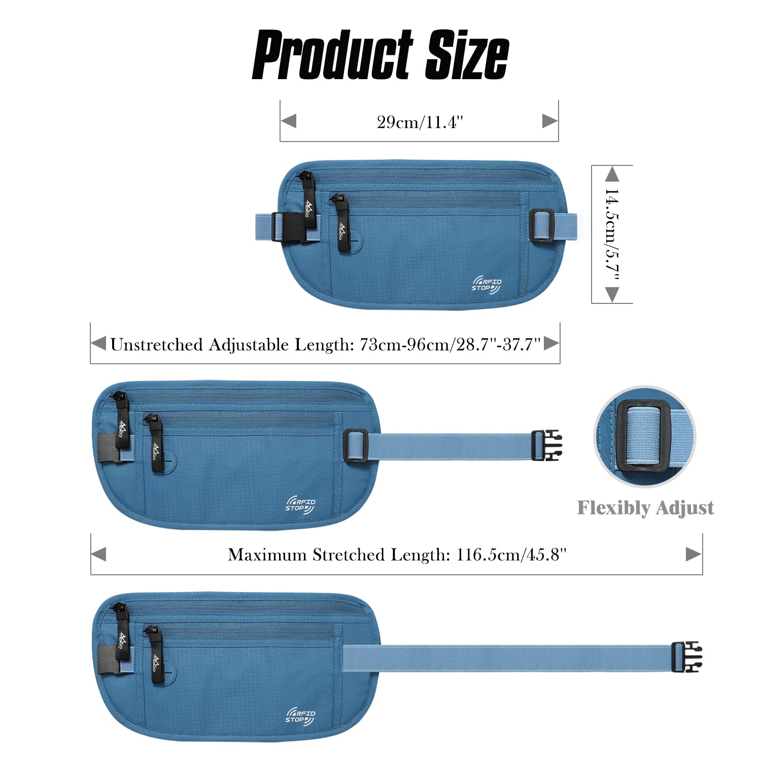 【ULTIMATE COMFORT】-Designed form skin-friendly material, the travel money belt is breathable to keep dry. Super lightweight that adds minimum bulk and weight, it is comfortable to wear. The elastic waist strap can be adjusted to perfectly fit waist circumference 28" to 50" and would not slide up and down, fixing the height you want perfectly.