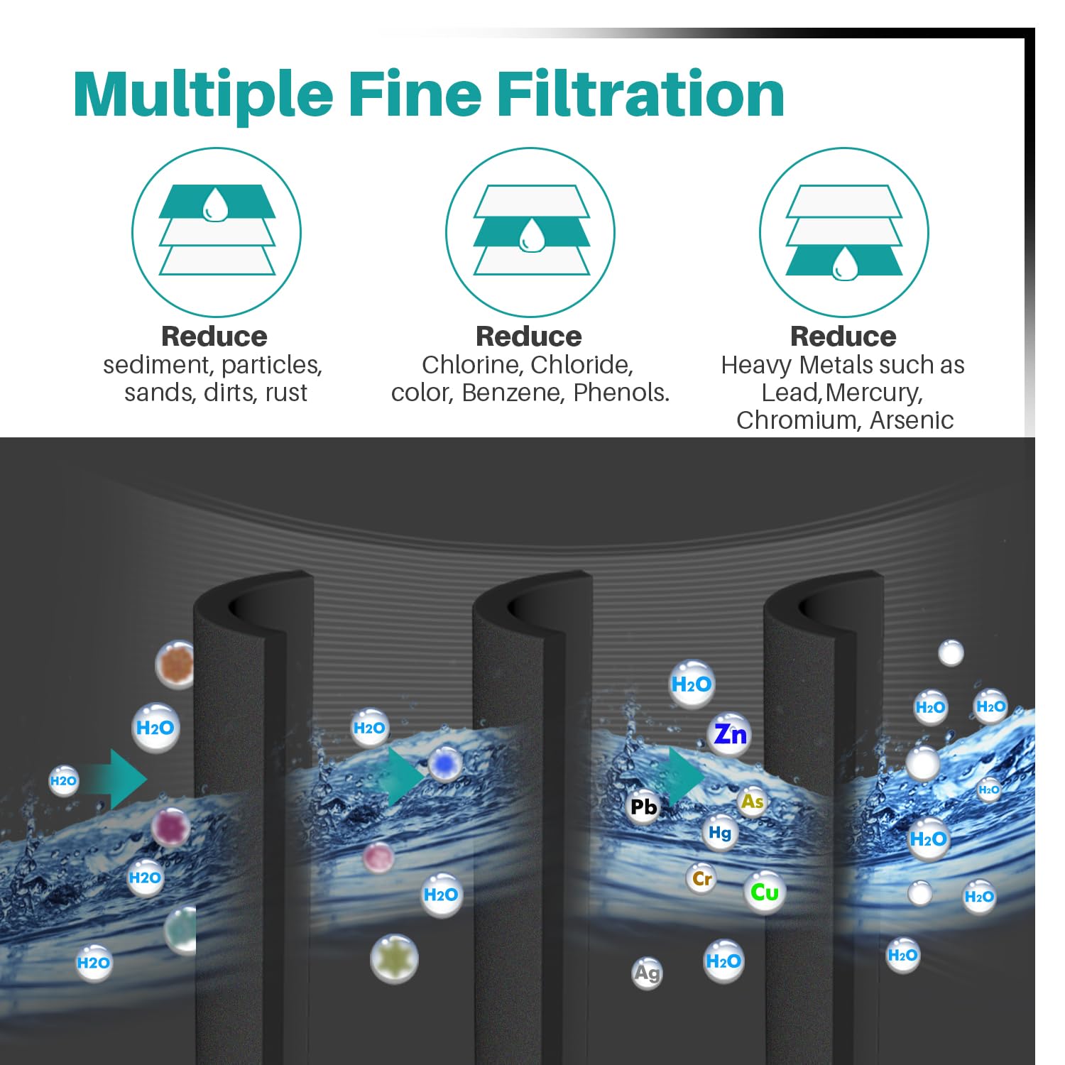 Pursuing Excellent Quality. This filter is NSF/ANSI 53 certified by WQA and IAPMO for Heavy Metal reduction. Lead causes harm to multiple systems including nerves, hematopoiesis, digestion, kidneys, cardiovascular, and endocrine. This filter reduces 99.6% Lead. This filter is also certified for NSF/ANSI 42 low lead, European EC-1935/2016, ROHS, REACH, BPA-Free, TUV, and Australian Water Mark. You never compromise on product quality for your loved ones, we either.