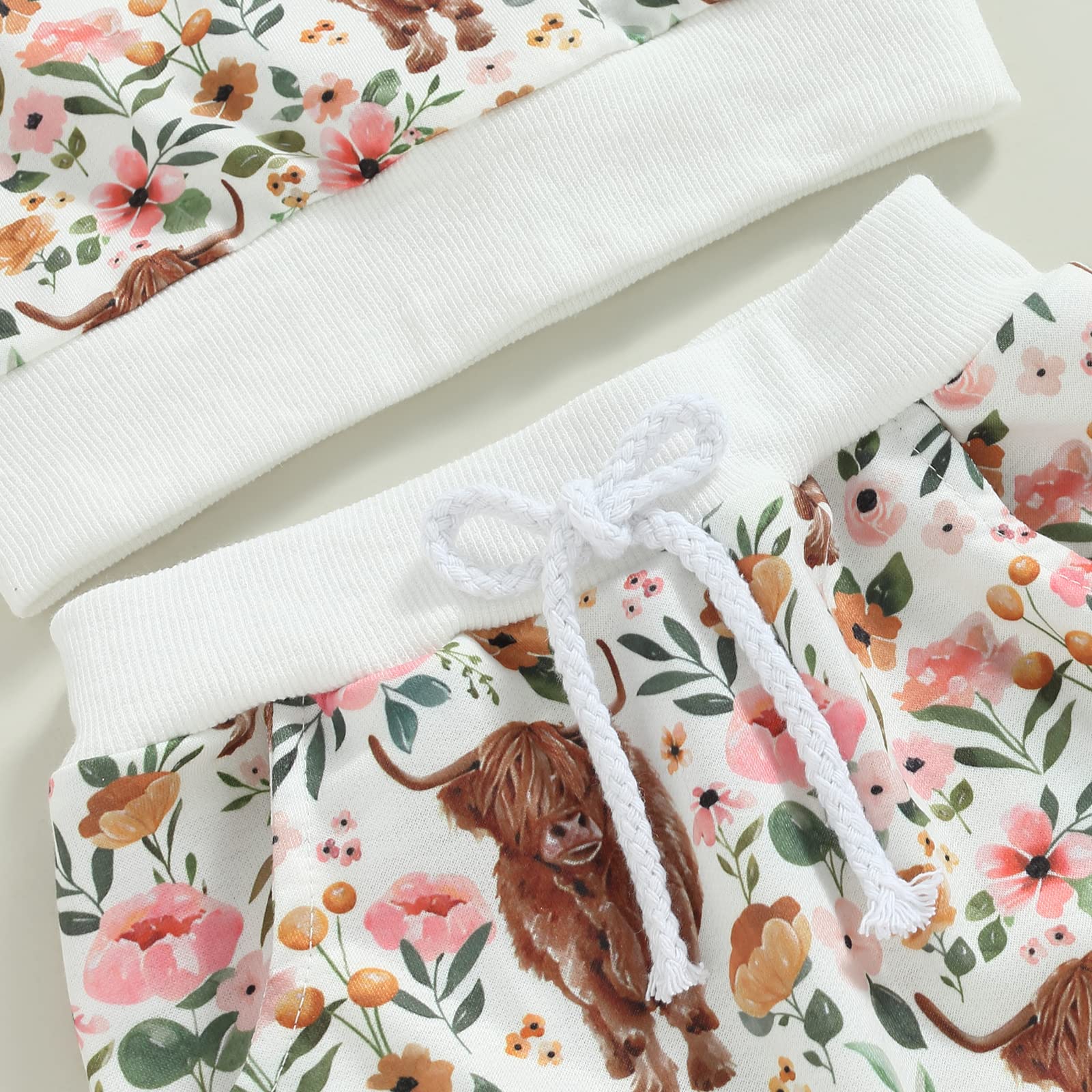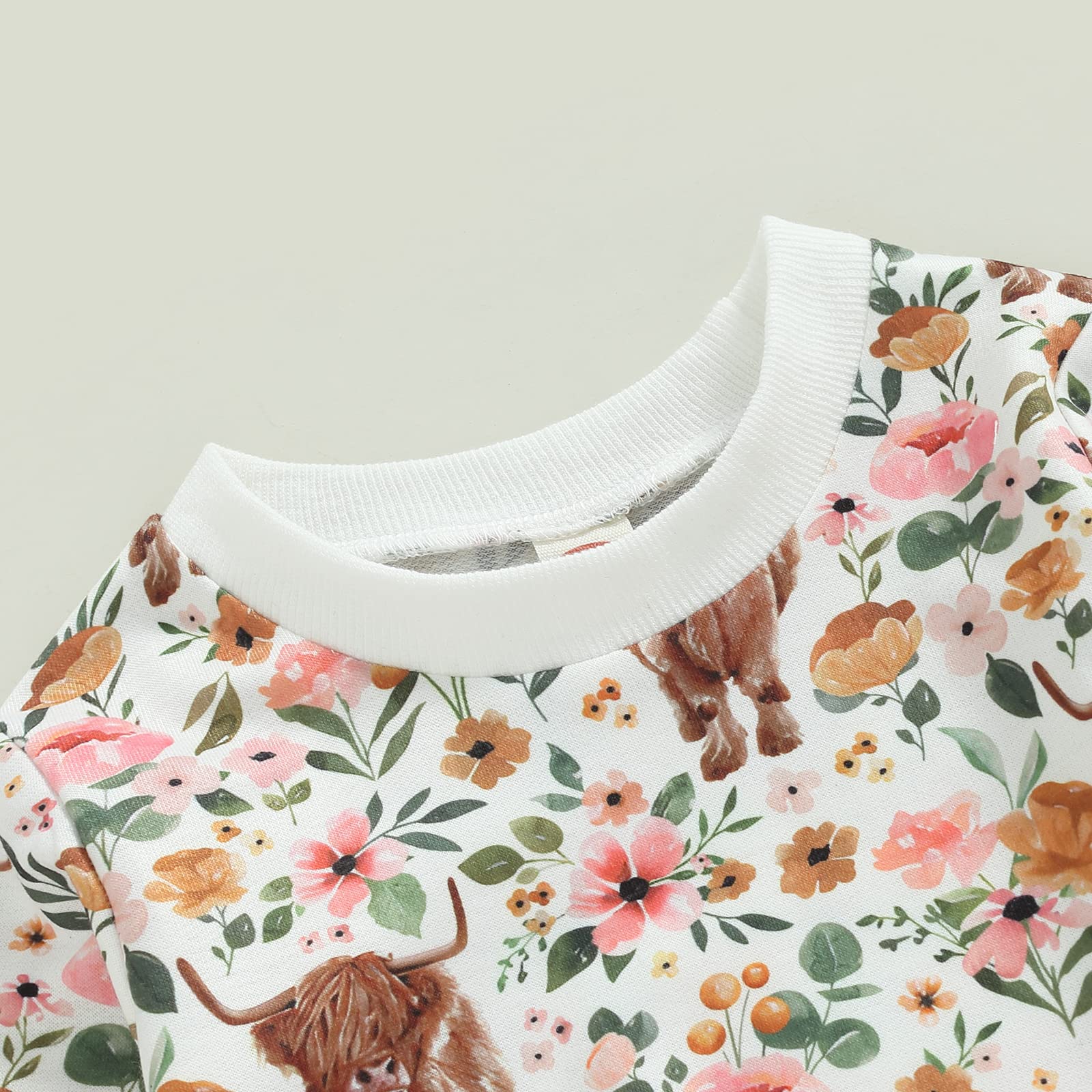 🏵️ Features: Daisy floral print long sleeve crewneck pullover shirt and stretchy pockets legging sweat pants matching with bow headbands, baby girl fall clothes