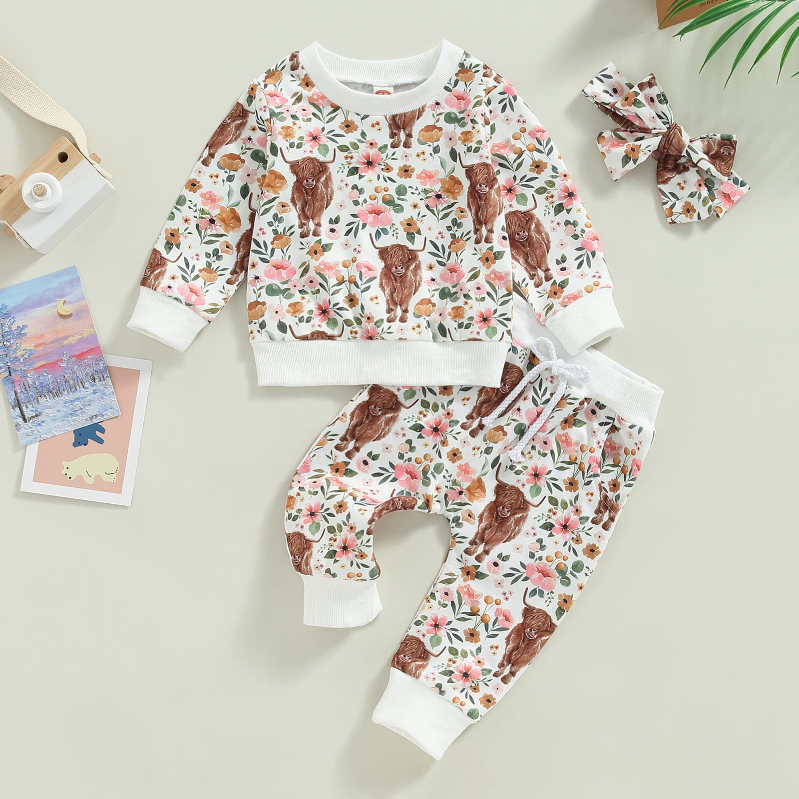 🏵️ Package included: 1*Sweatshirt Tops + 1*Long Pants. 2pcs baby girl fall winter clothes