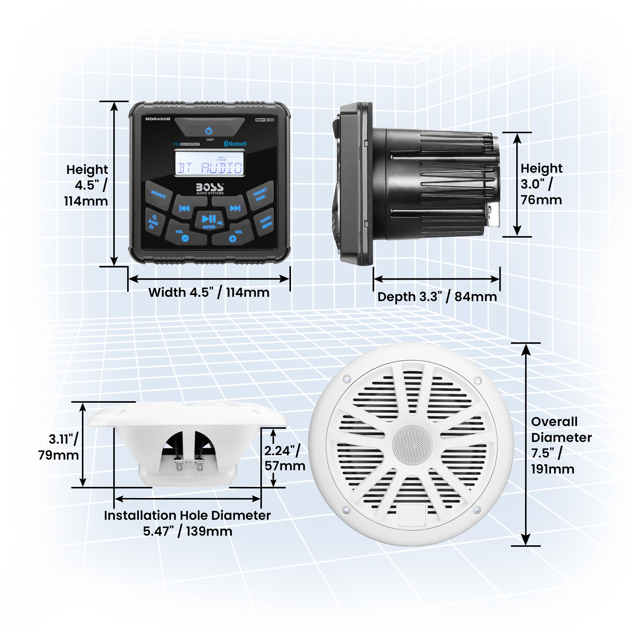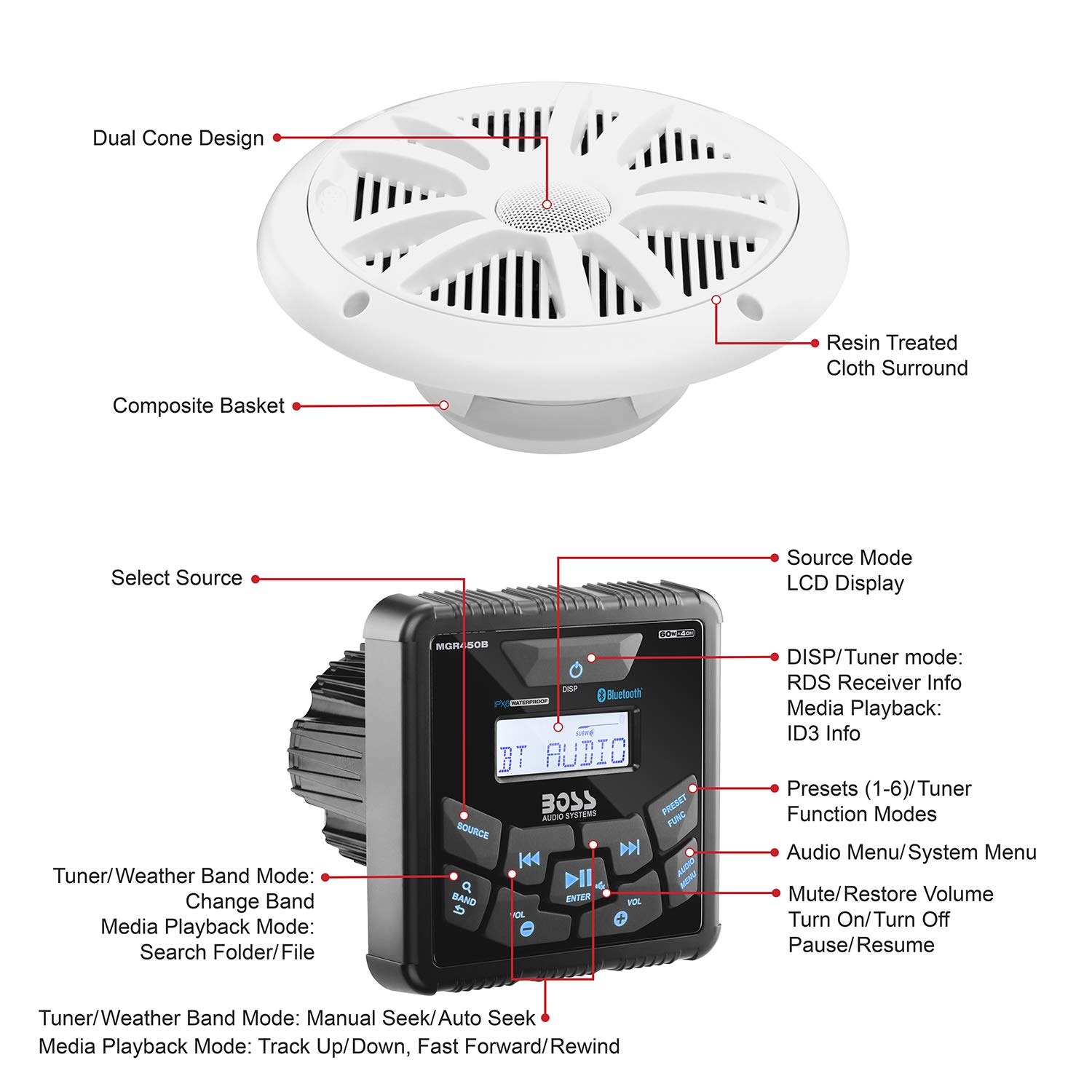 BOSS Audio Systems MCKGB450W.6 6.5 Inch Speakers & Marine Boat Gauge Stereo - Bluetooth Head Unit, No CD DVD Player, AM/FM Radio Receiver, NOAA Weather Band, IPX6 Weatherproof, USB