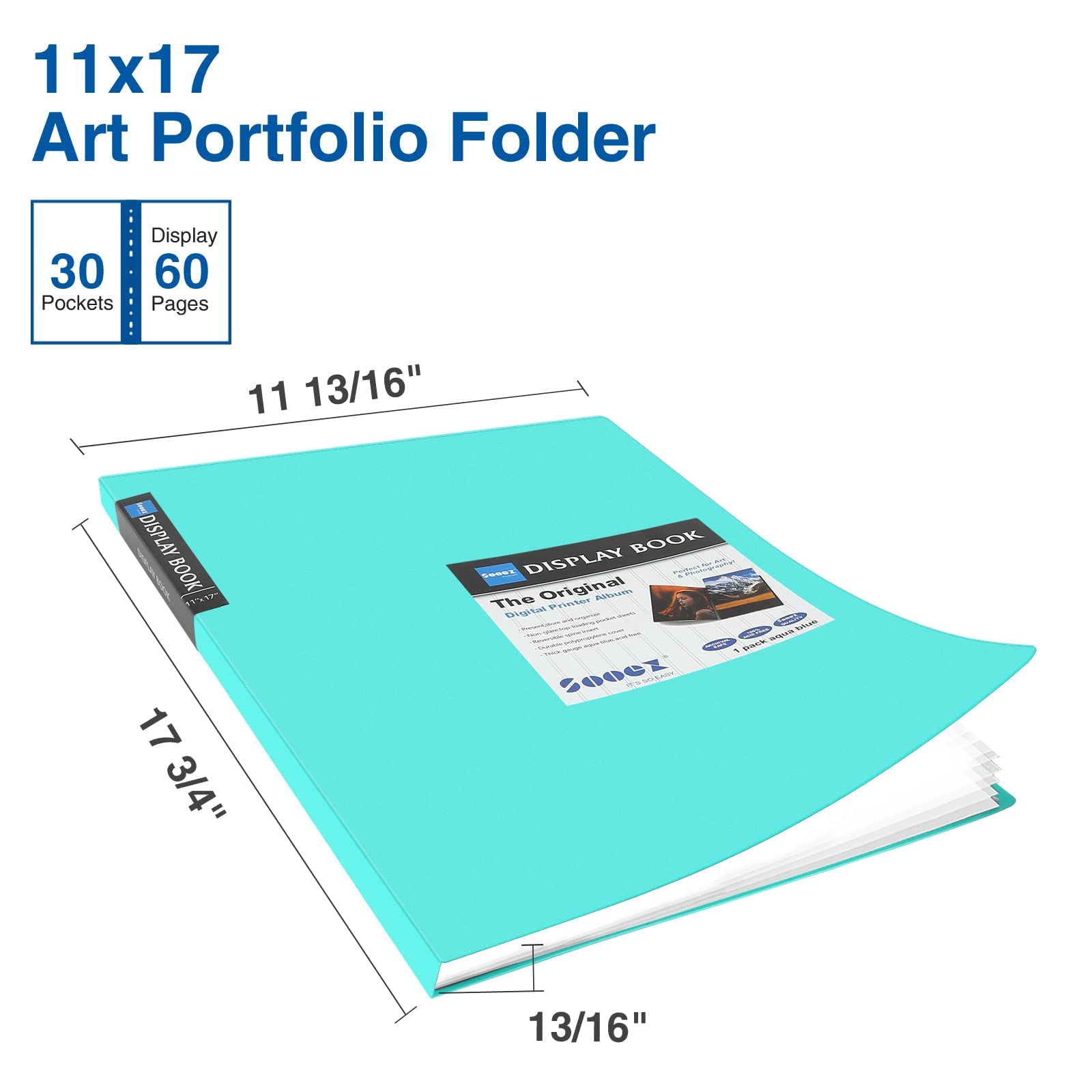 Large 11x17 Art Portfolio Folder: Folder measures 17 3/4" (L) x 11 13/16" (W) x 13/16" (G). Suitable for artwork storage and displaying your 11.18" x 17.4" artwork.